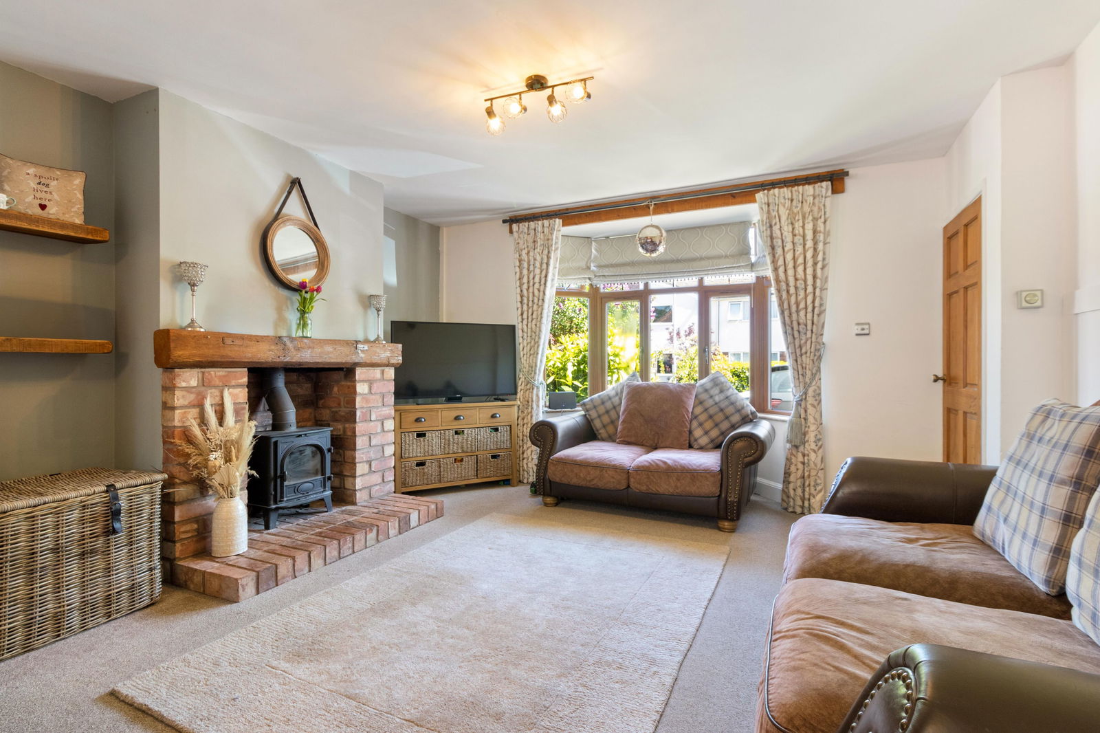 - Cottage Style Open Plan Kitchen/Dining/Family Room With A Feature Fireplace And Log Burner