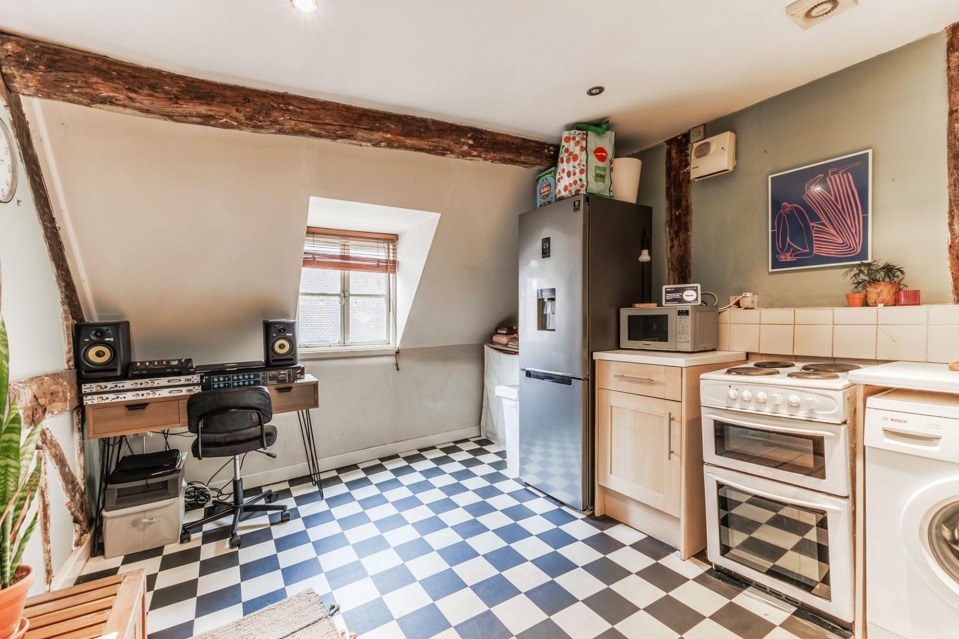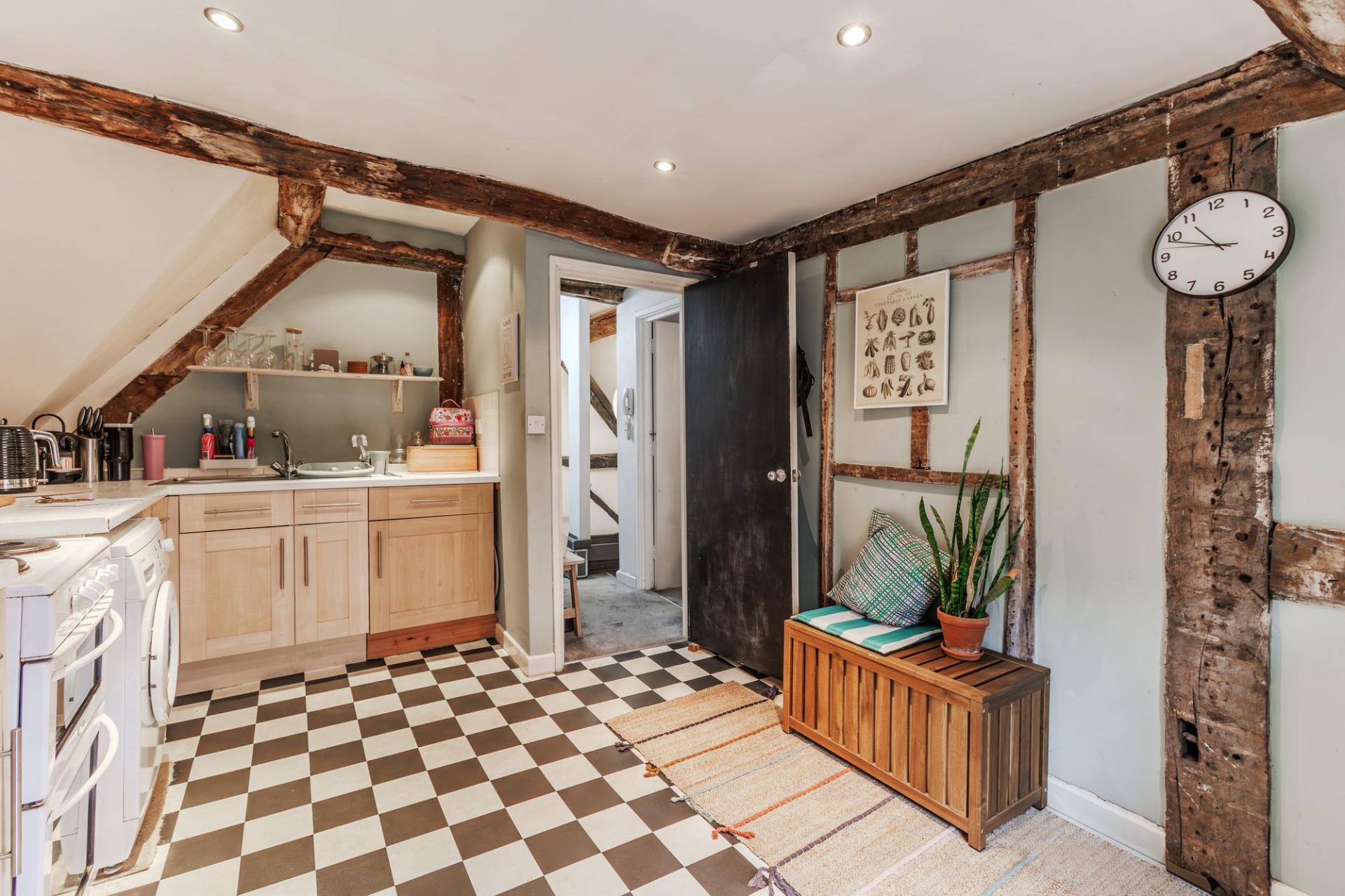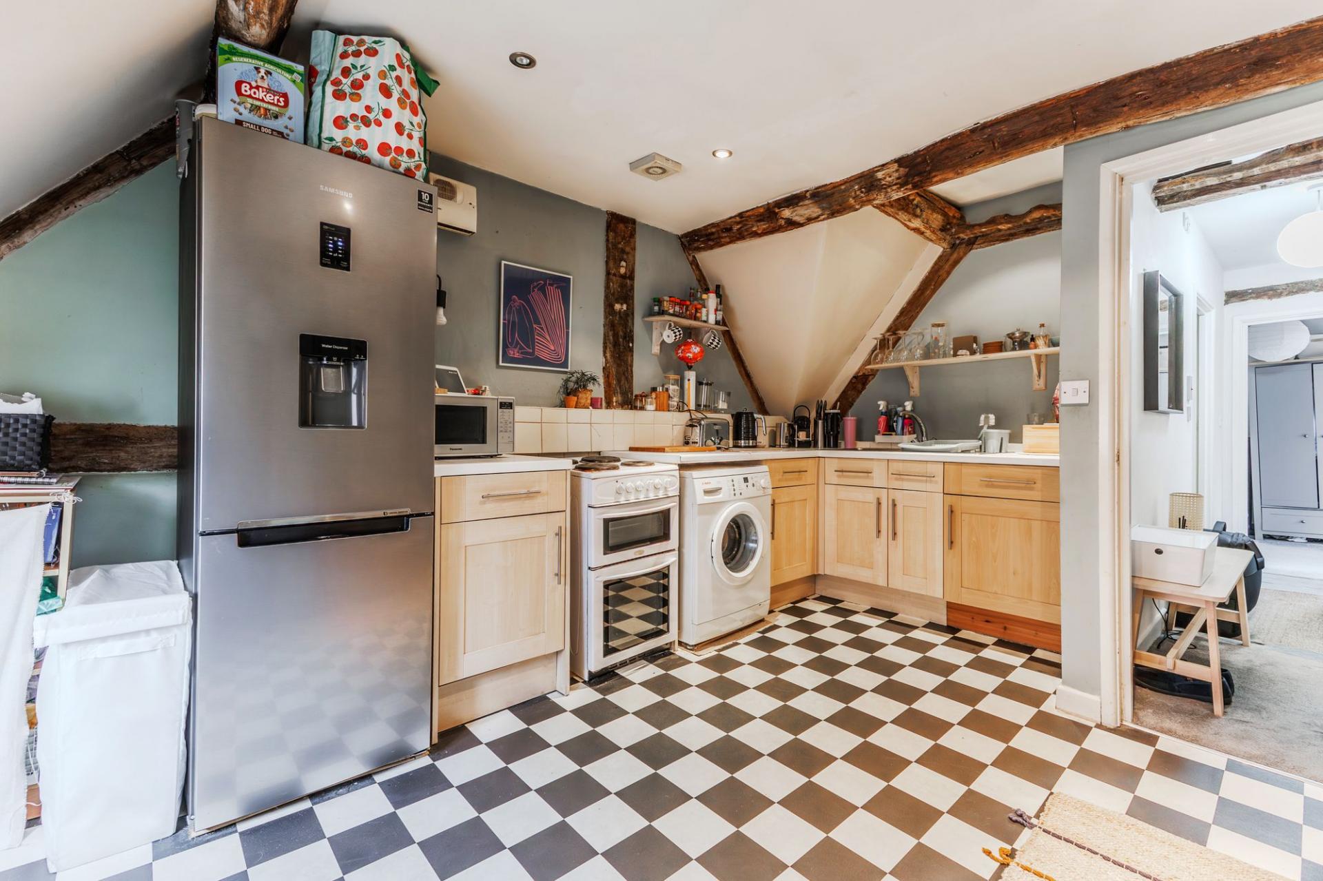 Set within an attractive period building, the property is rich in original features, including exposed beams, sash windows, and high ceilings, which combine to create a unique sense of charm and heritage.