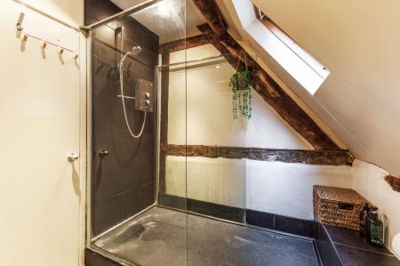 The bedroom is well-proportioned and tranquil, with character features complemented by contemporary décor, ensuring a peaceful retreat at the end of the day. A sleek, contemporary shower room completes the accommodation, boasting high quality fittings, a walk-in shower enclosure, and stylish tiling that enhances the overall sense of luxury. The apartment benefits from a practical layout that maximises both space and functionality, making it perfectly suited to professionals, first time buyers, or those seeking a distinctive pied-à-terrae in a highly convenient location.