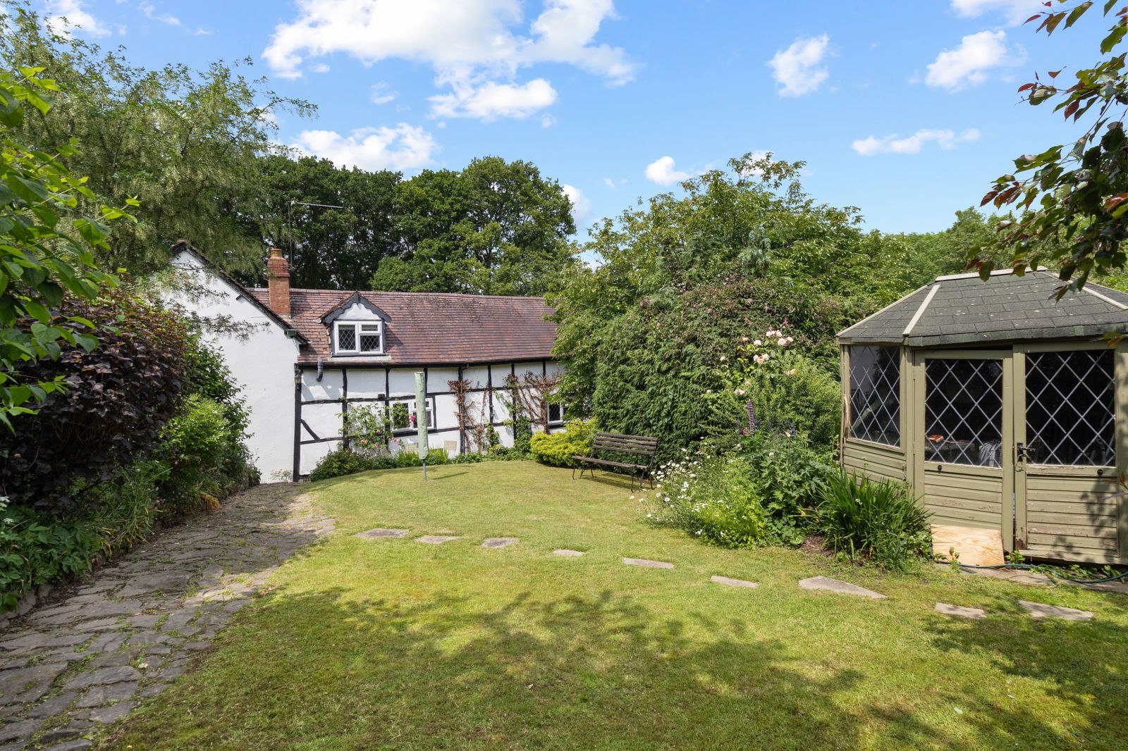 To the rear a paved patio area leads to steps up to this generous rear garden.  The first part is laid to lawn with a pedestrian path to the right hand side past planted mature beds to either side and having access to the SUMMER HOUSE.  The path continues through a wooden arbour to a further lawn which once would have been a productive vegetable garden which includes soft fruits, two GREENHOUSES and WOODEN SHED.  At the top tier of the garden is a large WORKSHOP divided into two areas with WOOD STORE to side.  To the side of this a paved parking area with double gates leading out to the original green lane for the area and the property has vehicular and pedestrian access over.  No doubt one of the points of this property is its wonderful location being private and secluded in a quiet environment surrounded by wildlife and mature trees in the surrounding woodland of Old Storridge.