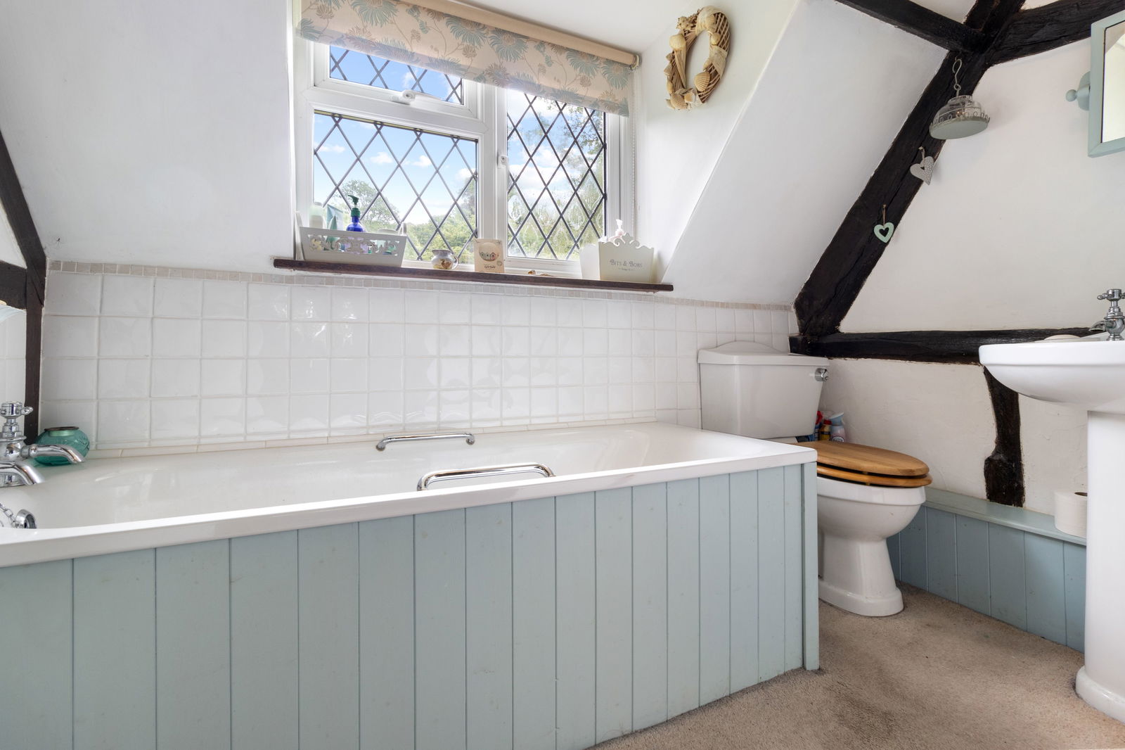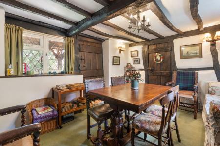 To the first floor the Master Bedroom enjoys a double glazed dormer window with further double glazed window both with views and being a double bedroom with fitted wardrobes.  The main landing is a flexible and versatile space set up as an occasional bedroom.   There are two further Double Bedrooms serviced and complimented by the Family Bathroom.  Throughout the property the exposed wall and ceiling timbers are on offer which are a real feature of the house with particular note being the wonderful carved facade of the landing door frame.  Period original doors flow throughout the first floor.