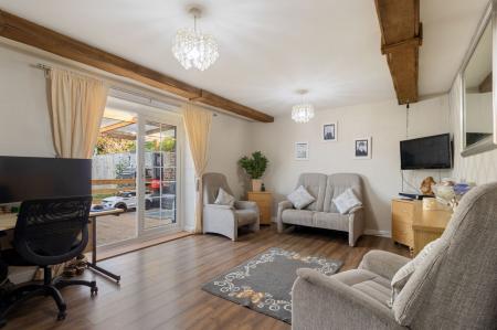 A versatile space positioned to the rear of the property and enjoying a recently installed double glazed double doors overlooking and opening to the covered seating verandah.  Two ceiling light points and radiator.  Door to