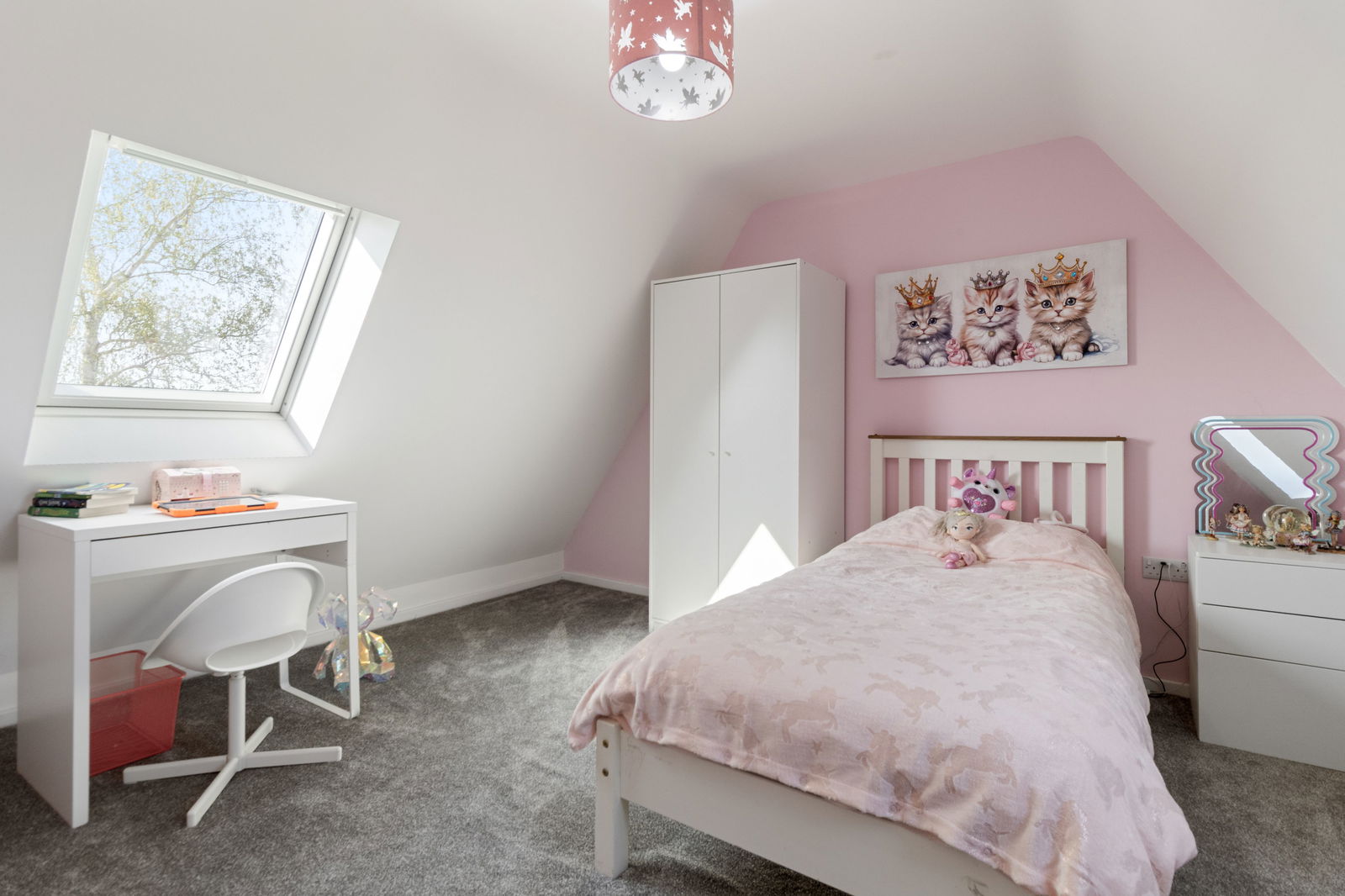Double glazed Velux skylights to front and rear providing views.  A good size double bedroom with ceiling light point and radiators.