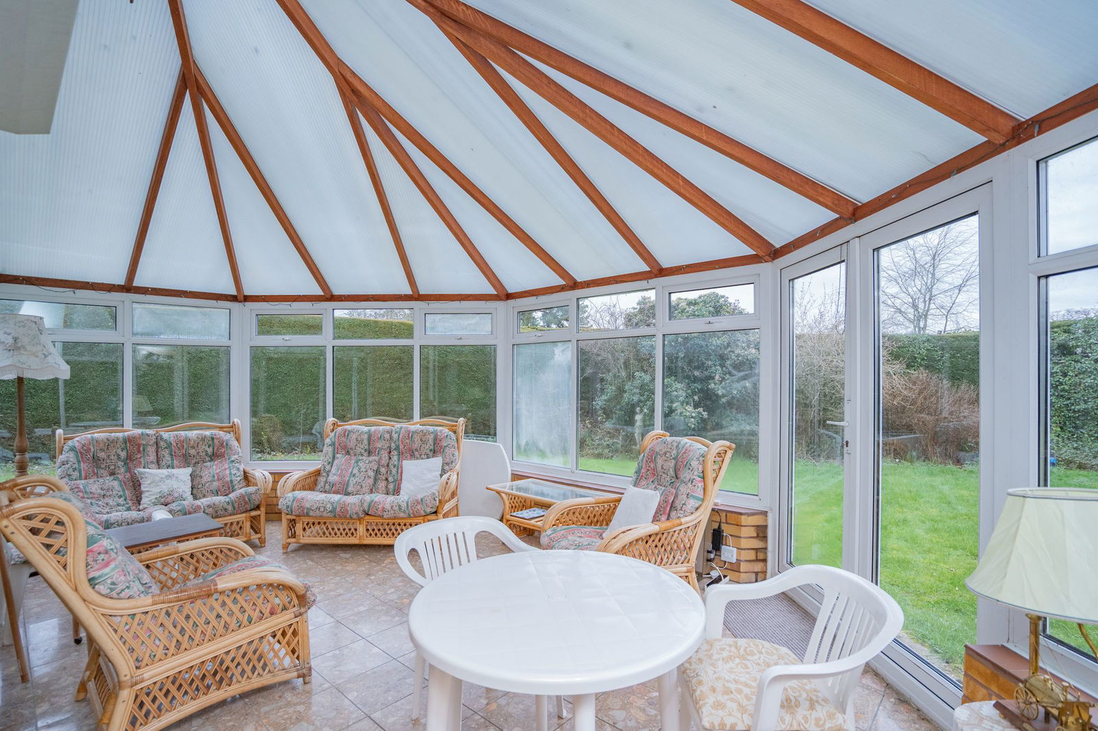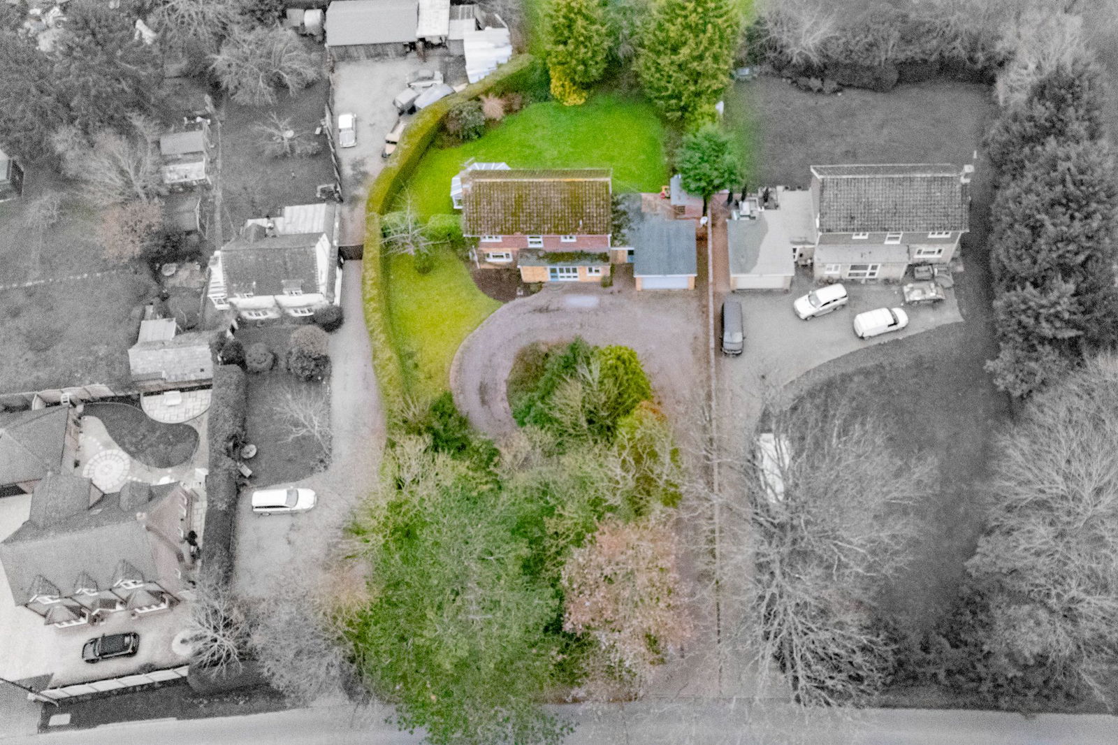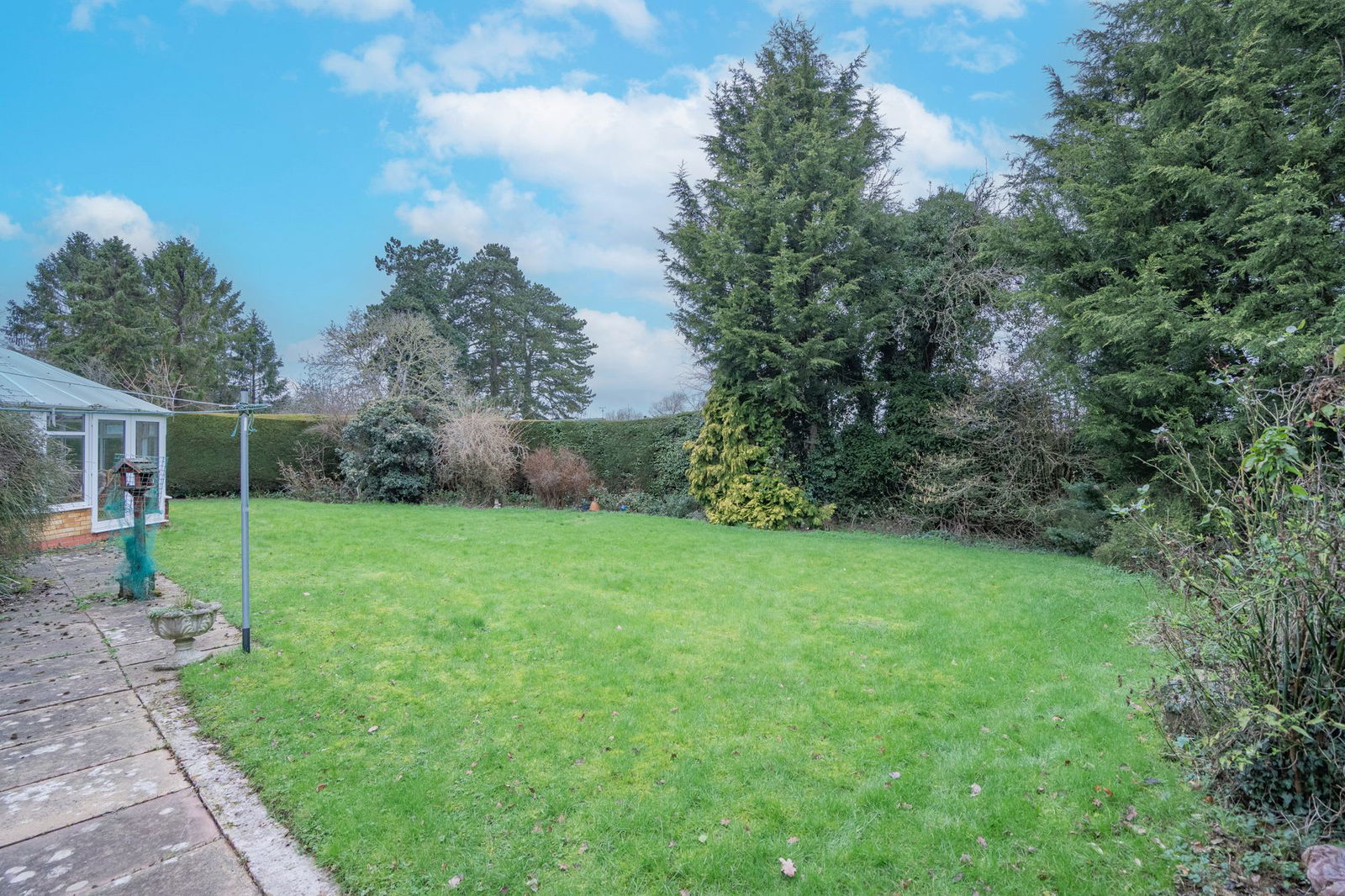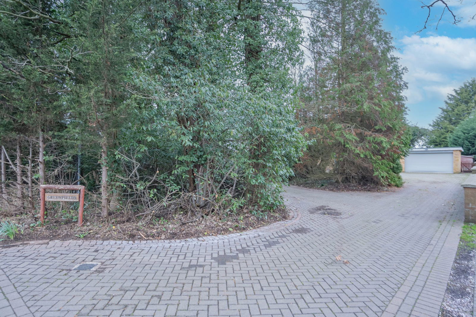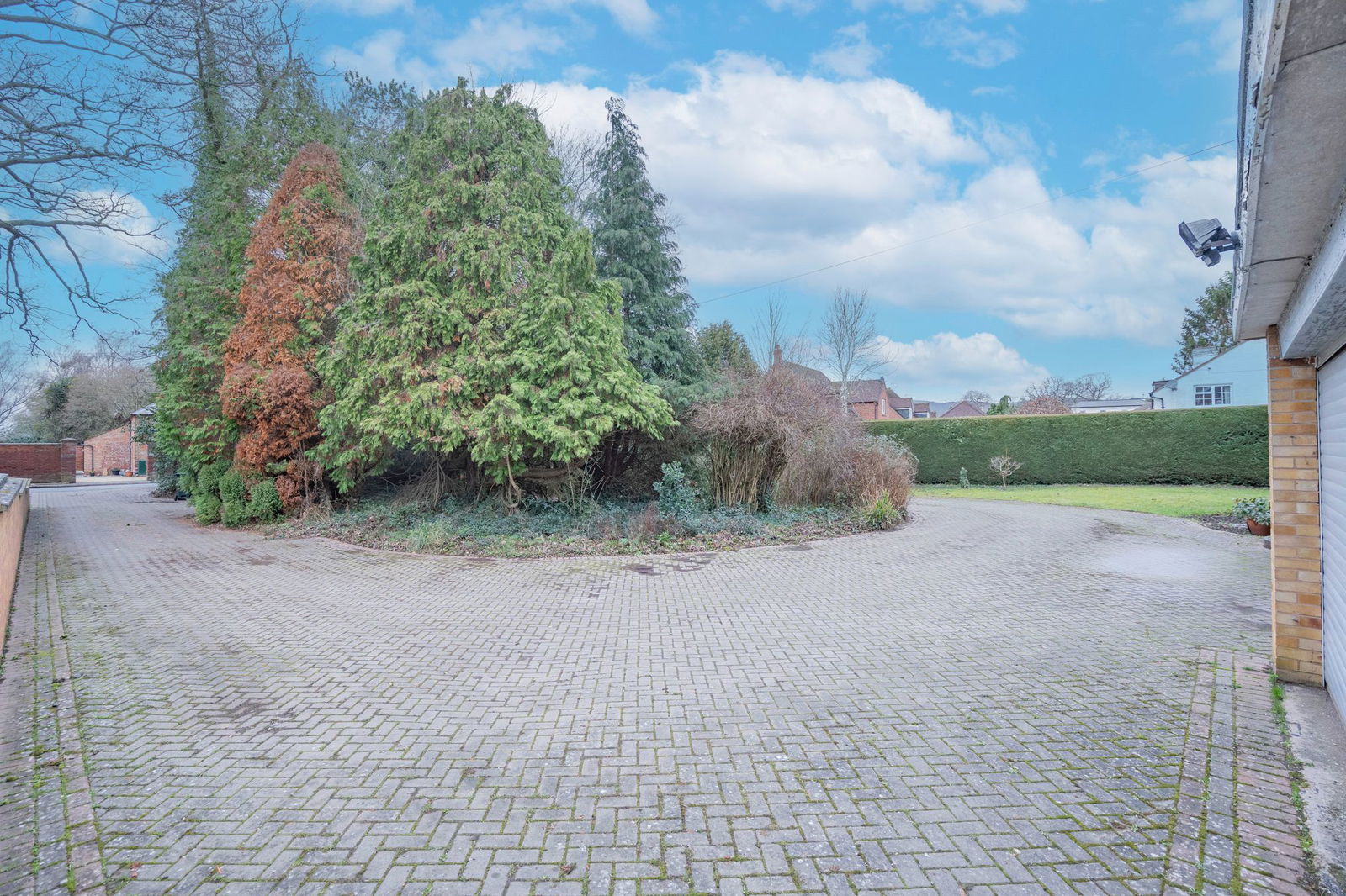 The house is set well back tucked away behind hedge and tree frontage providing privacy from the road. There is a block paved driveway with central island that allows ample parking for vehicles. The driveway provides access to doors to a porch and utility room.