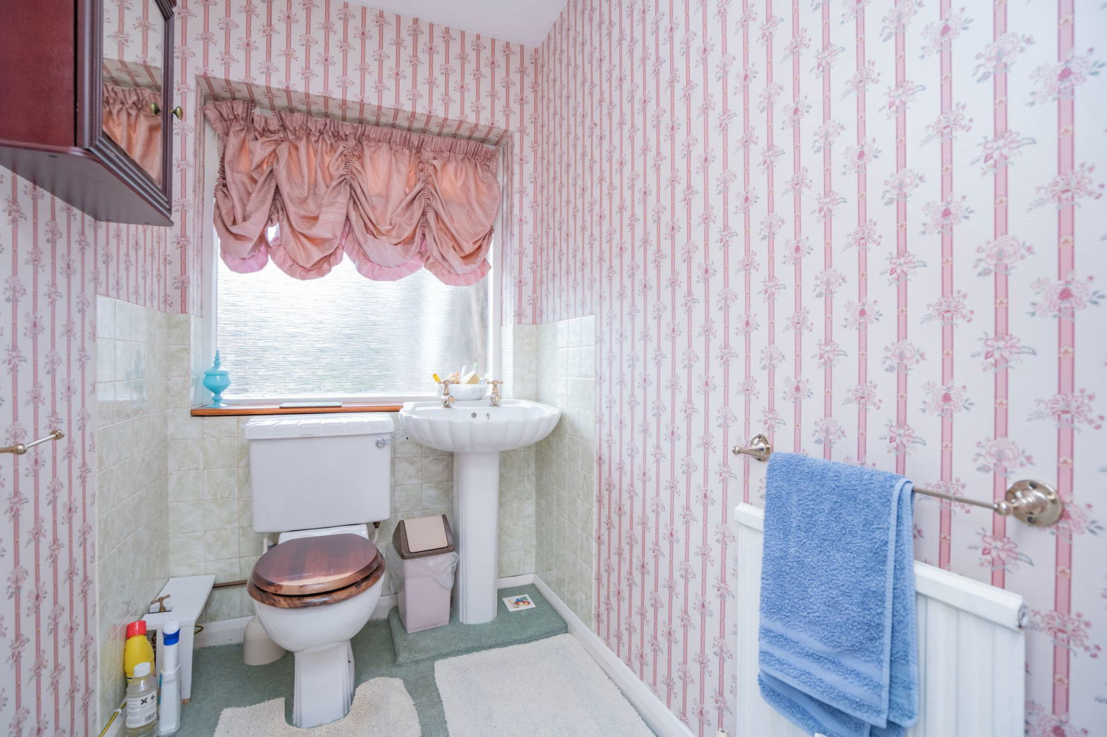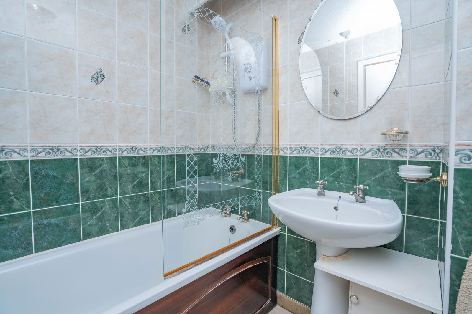 The family bathroom has a panelled bath with Triton electric shower over, close coupled WC and pedestal wash hand basin.