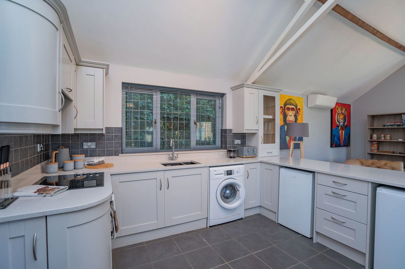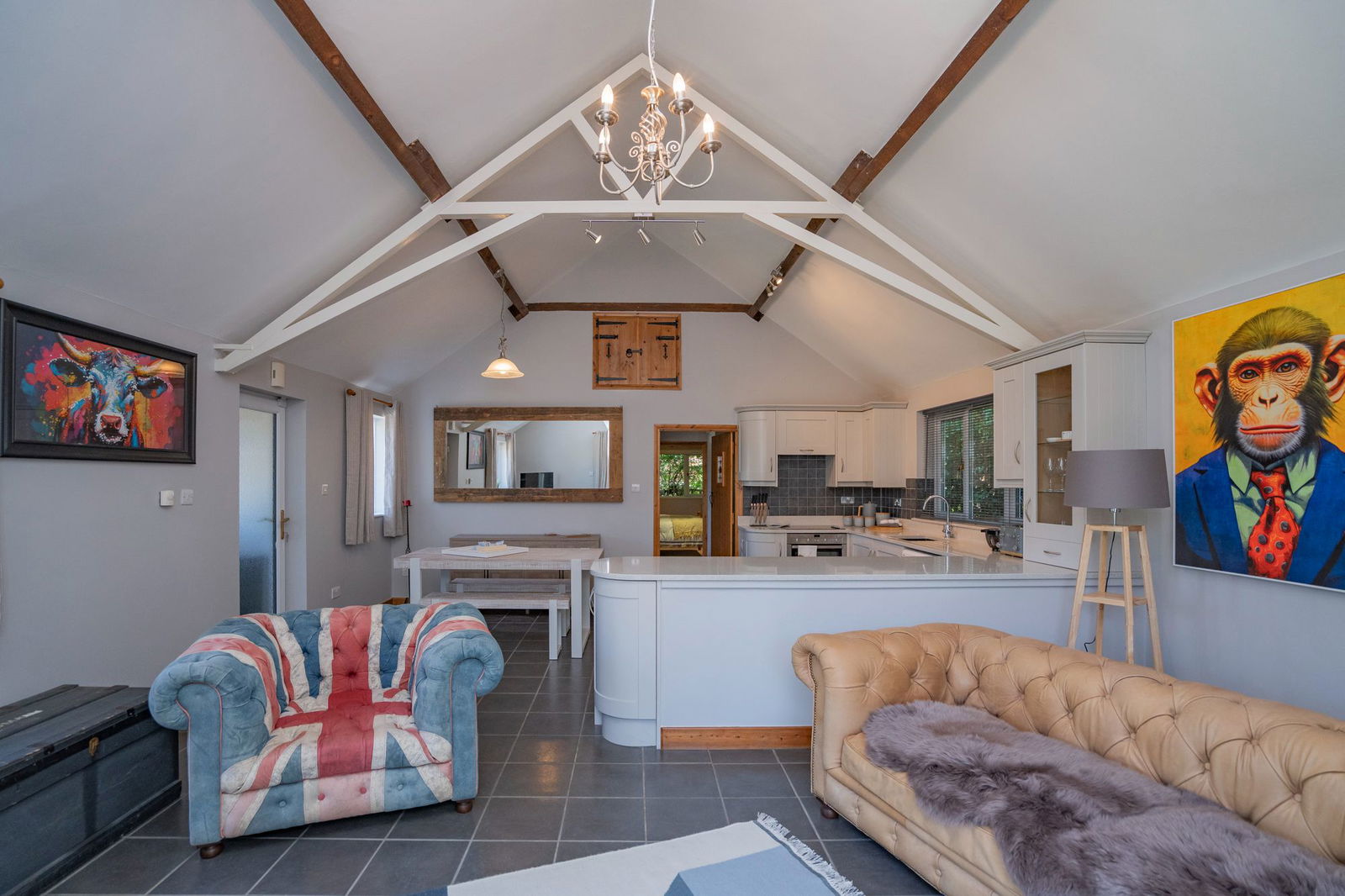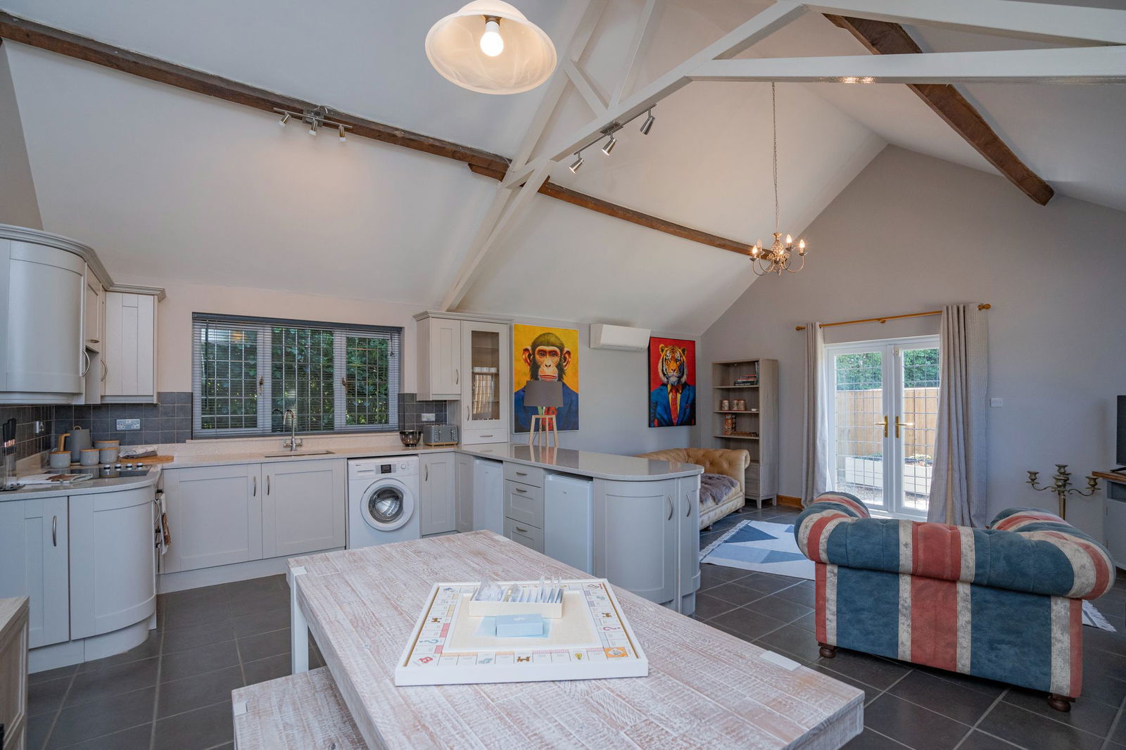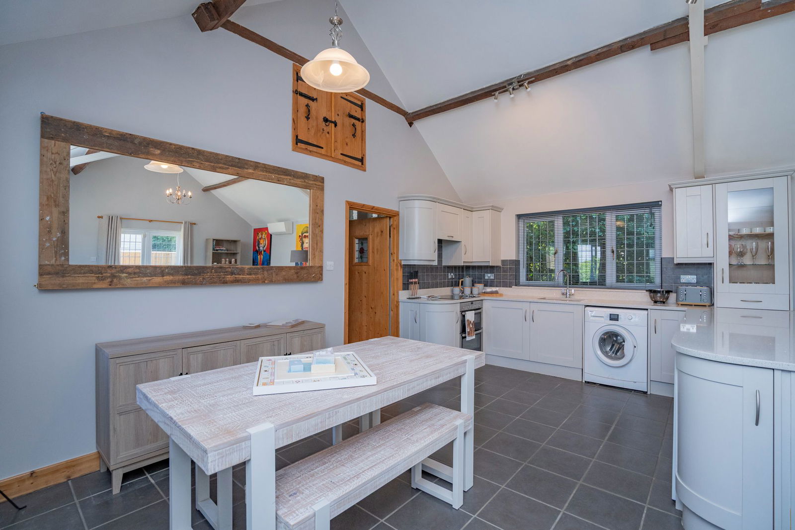 The Old Forge is a detached single storey bungalow ideal for a dependant relative or family member, teenager suite or could be used as an Airbnb/holiday let or even as a home office.  As with Grove Cottage the Old Forge has undergone an extensive programme of refurbishment finished to a high specification and this is immediately apparent as you walk through the Entrance Porch into the wonderful Living Area, with high vaulted ceiling and exposed ceiling timbers.  The Kitchen offers a range of Shaker style cupboards set under a granite worktop with integrated  Neff HOB and OVEN open to the Living Area with air conditioning, double doors opening to the private garden and Dining Space.  An inner hallway gives access to the Master Bedroom which is double proportions with an En-Suite Shower Room and further Second Double Bedroom serviced and complimented by the refitted Bathroom.