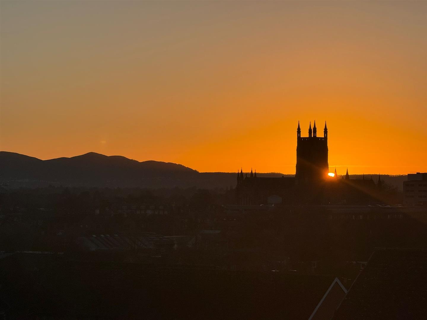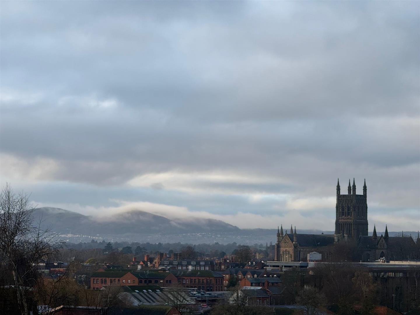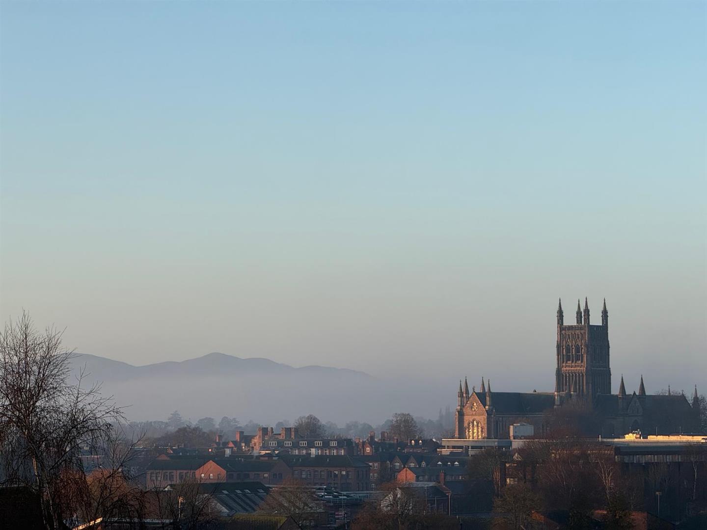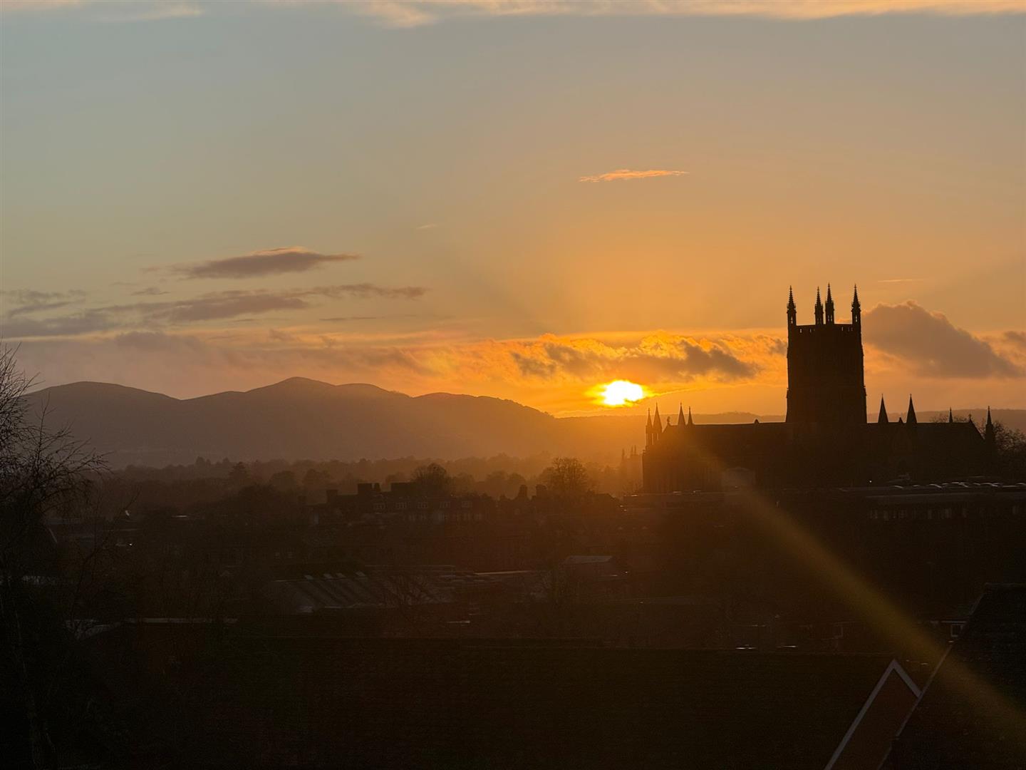 - Lovely outlook to the front of Worcester Cathedral and Malvern Hills