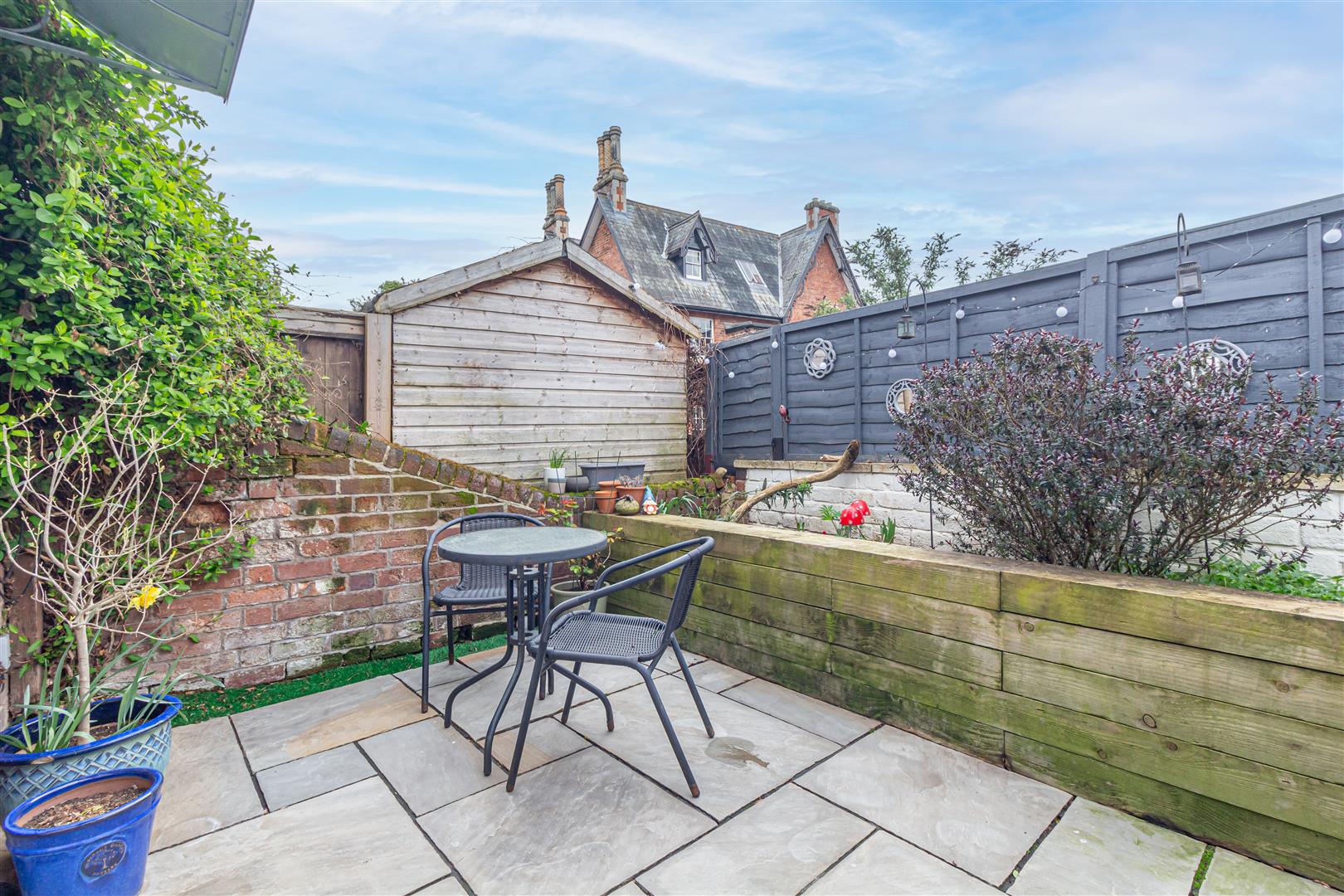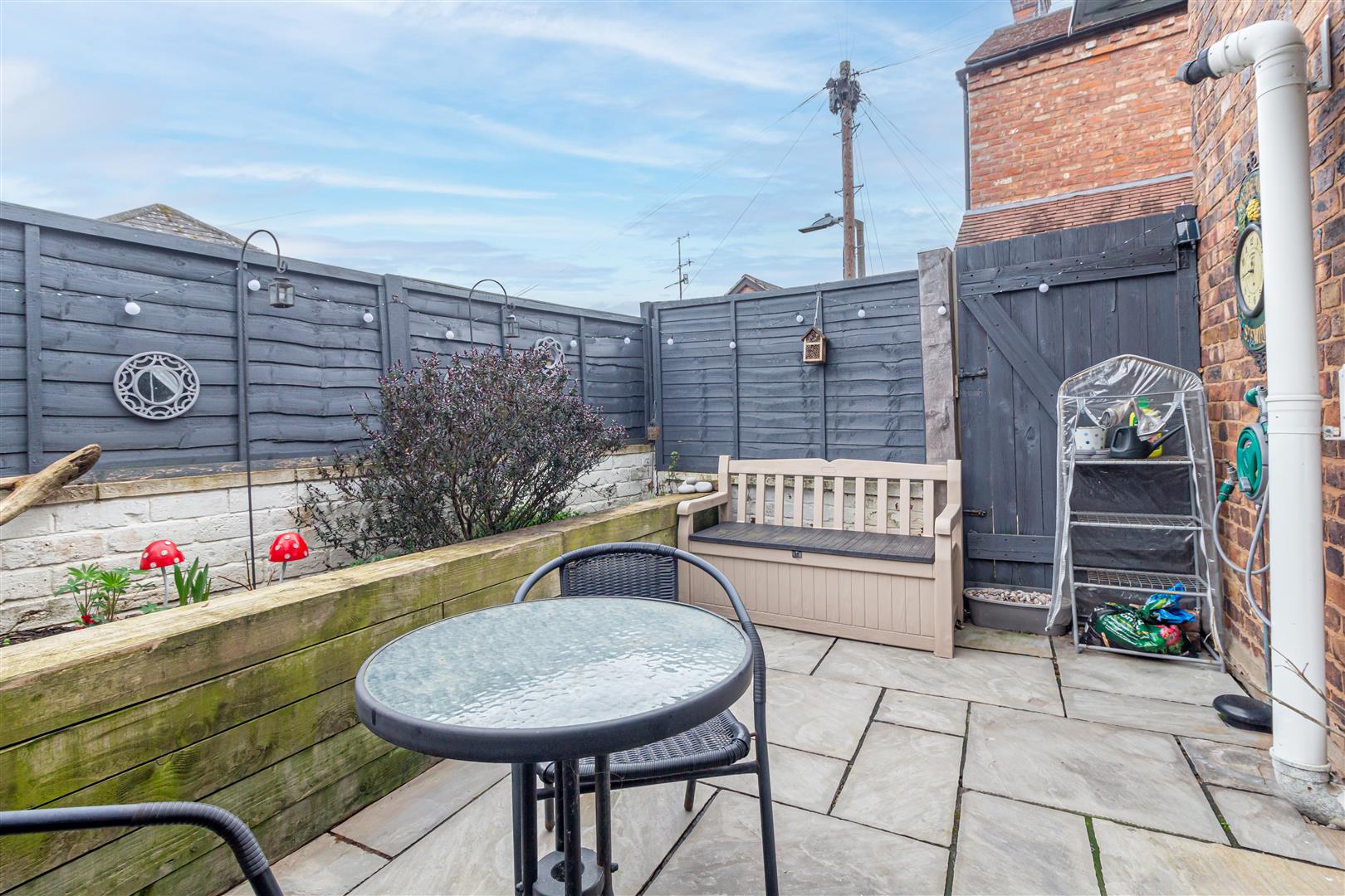 Outside - Rear - The rear garden, which can be accessed via the living room or gated side access, is a low maintenance enclosed south-facing courtyard area with raised borders and canopy porch.
