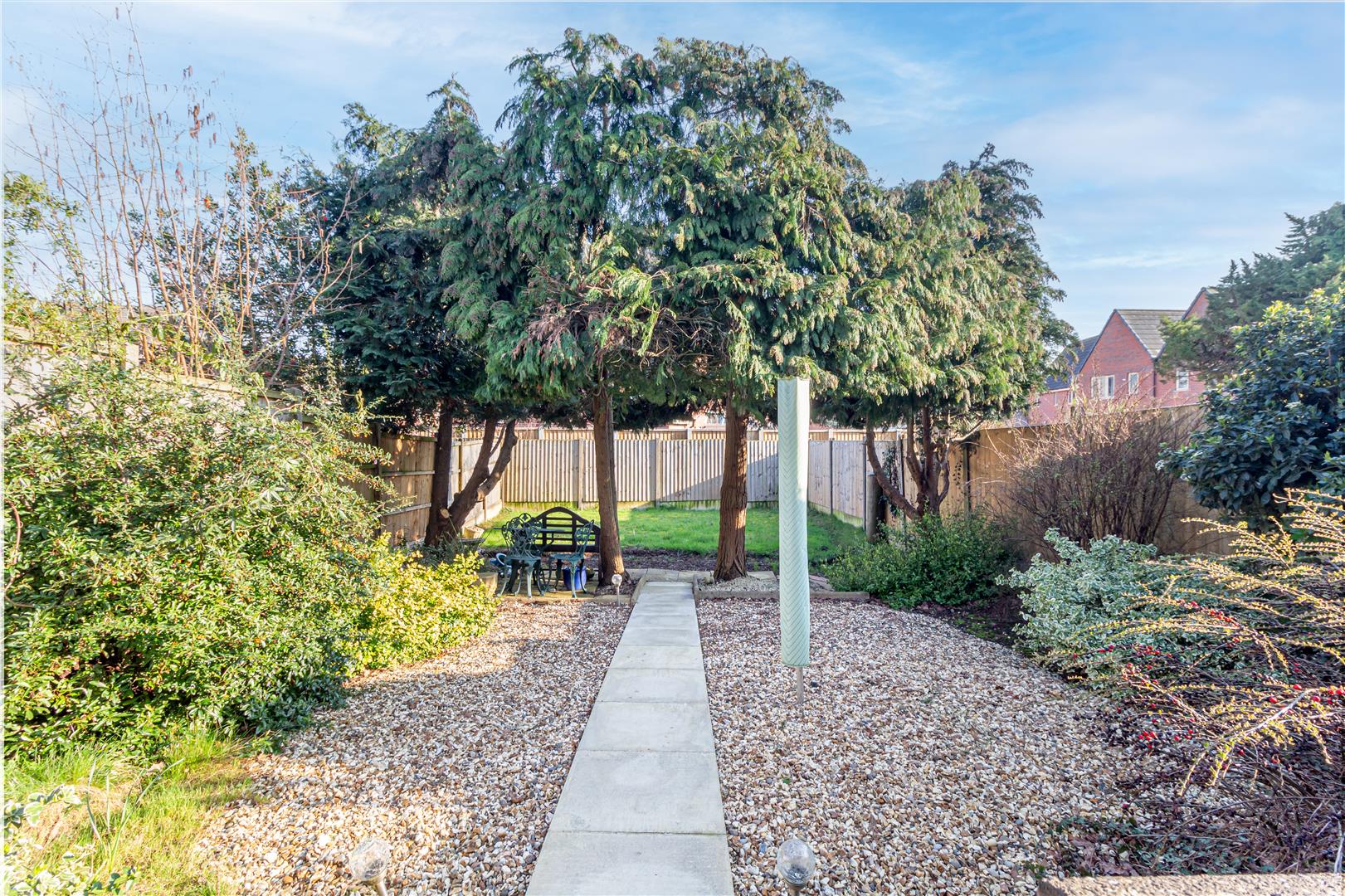 Outside - Rear - Initial patio area with path with lawned area and gravelled side areas. Garden enclosed by timber panel fencing.