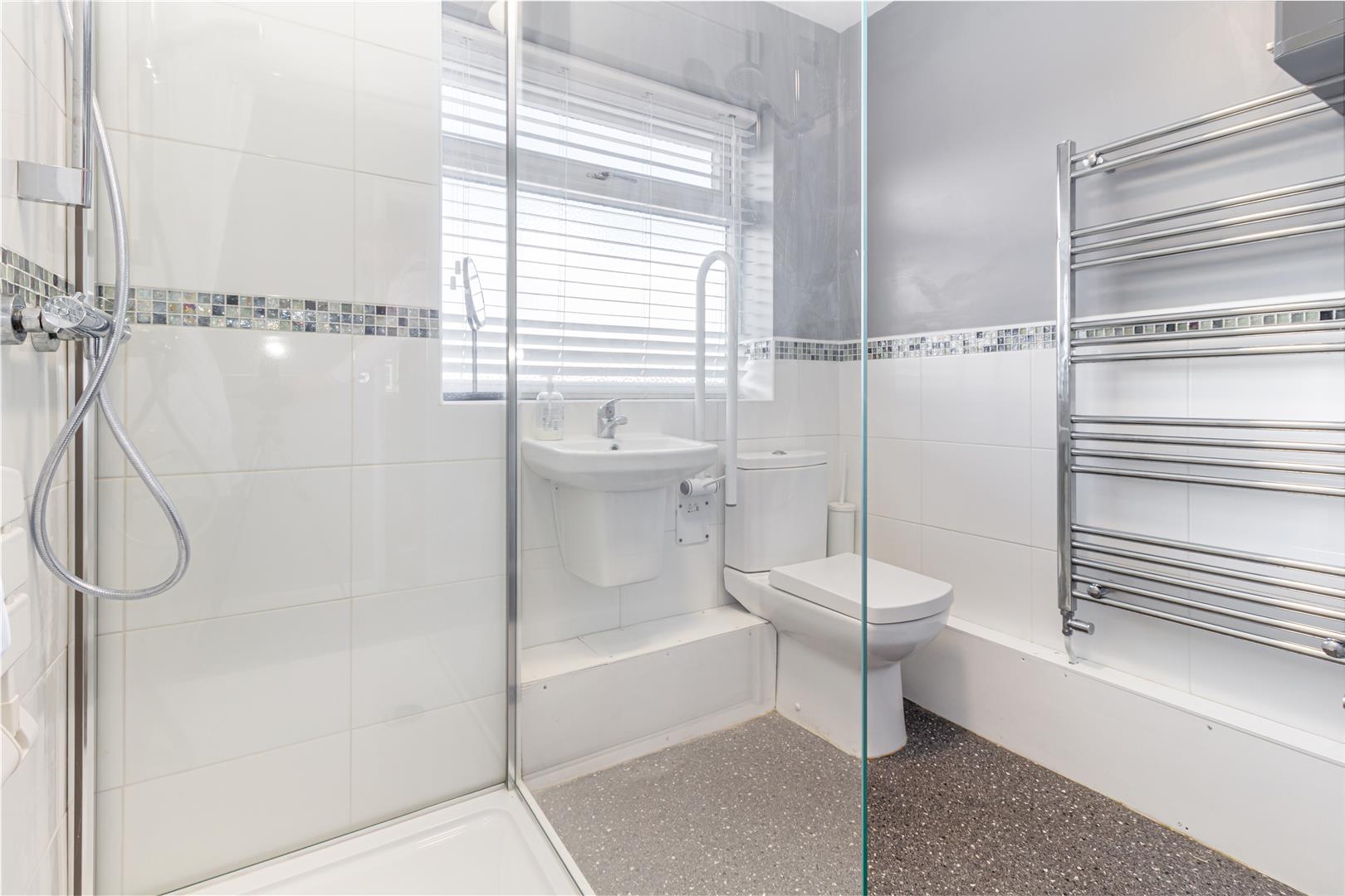 Shower Room - Obscure double glazed window to rear aspect. Heated towel rail. Ceiling light point. Shower cubicle with mains fed shower. wash hand basin and low level WC. Tiled splashbacks.