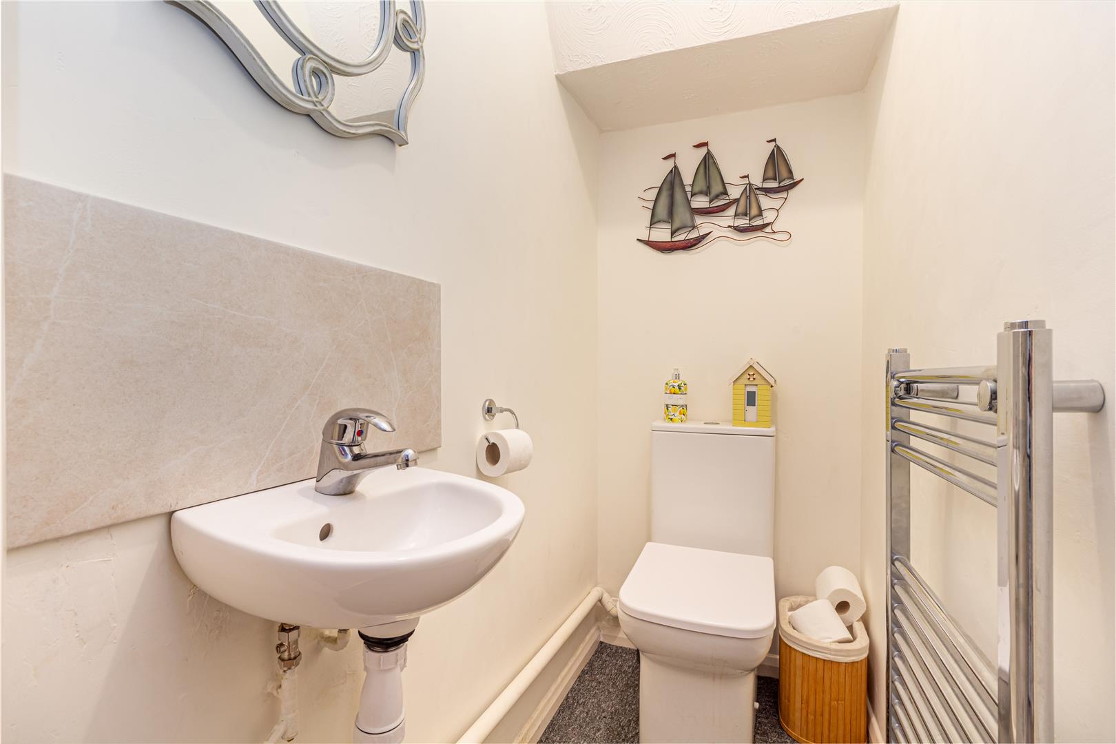 Wc - Low level WC. Heated towel rail. Ceiling light point. Wall-mounted wash hand basin. Tile splashback.
