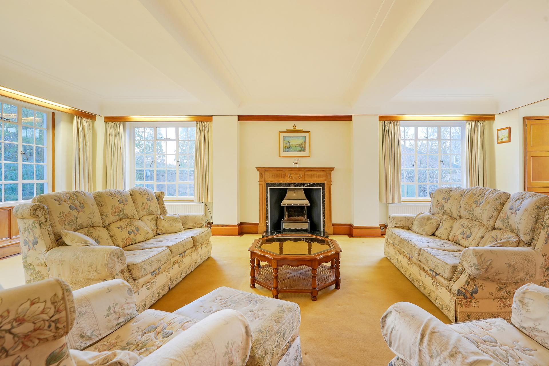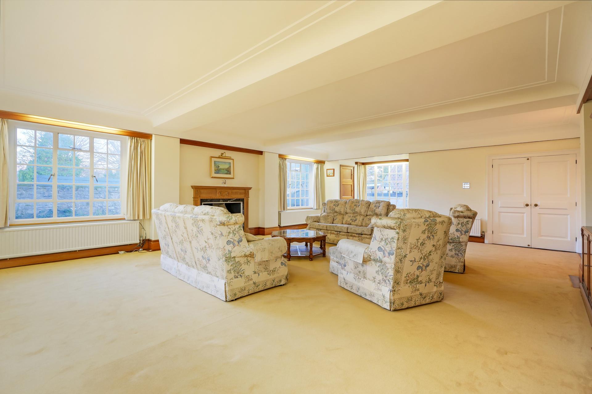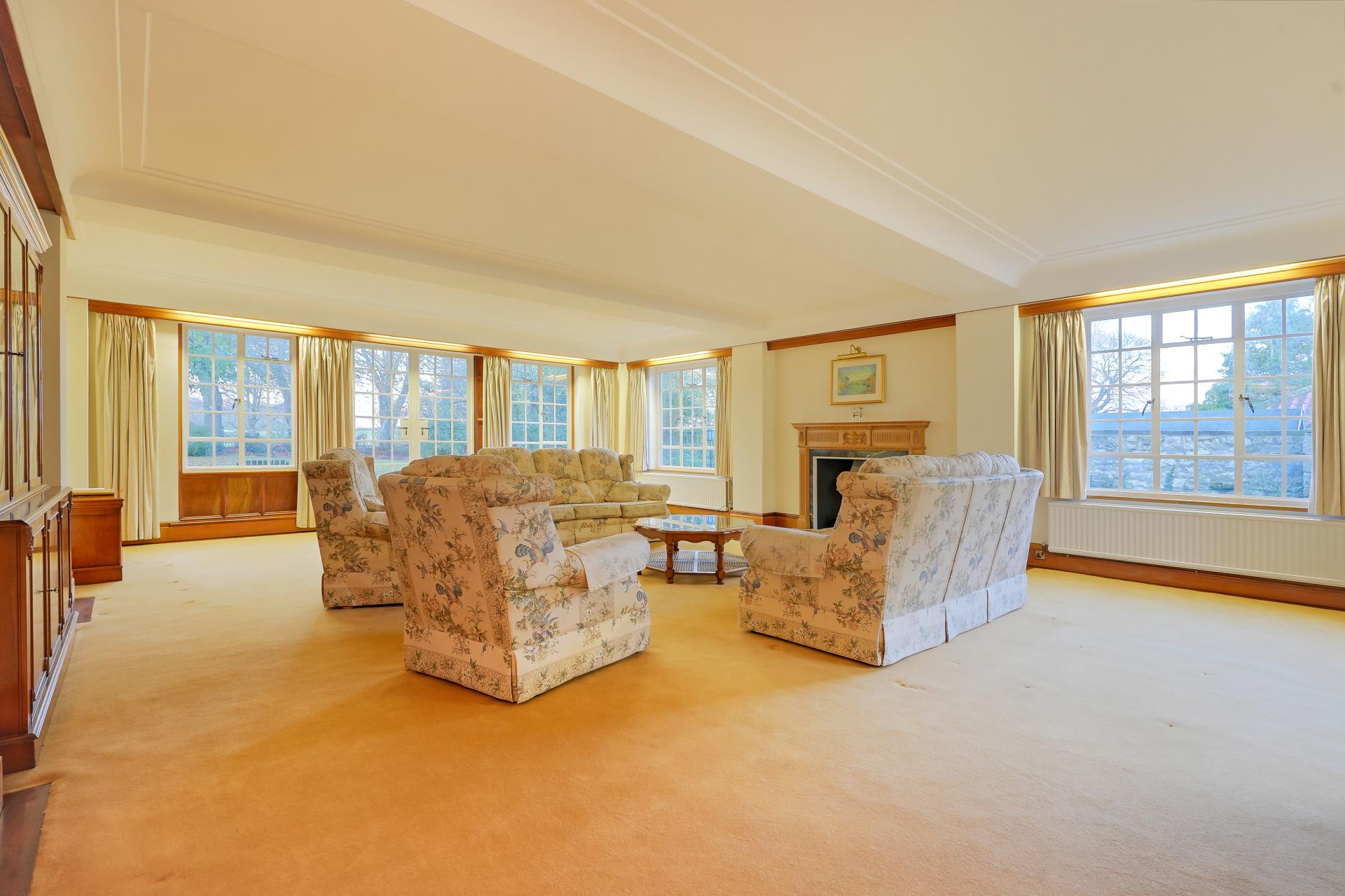 SITTING ROOM 32' 0" x 22' 1" (9.75m x 6.73m) A magnificent sitting room, an expansive 30ft space with dual aspects and French doors opening onto the garden, flooding the area with natural light - a perfect room for relaxing or hosting.