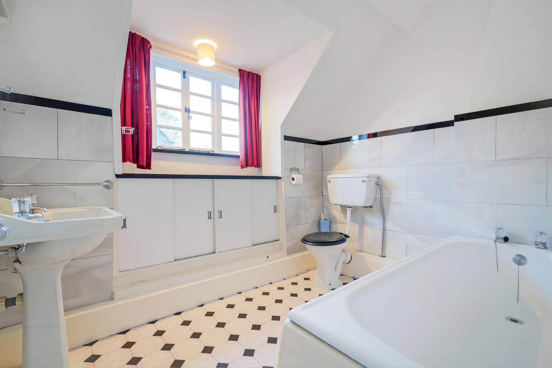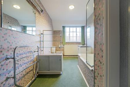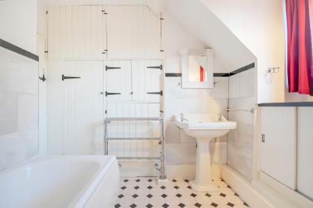 A fully fitted family bathroom with both bath and separate shower serves this level.