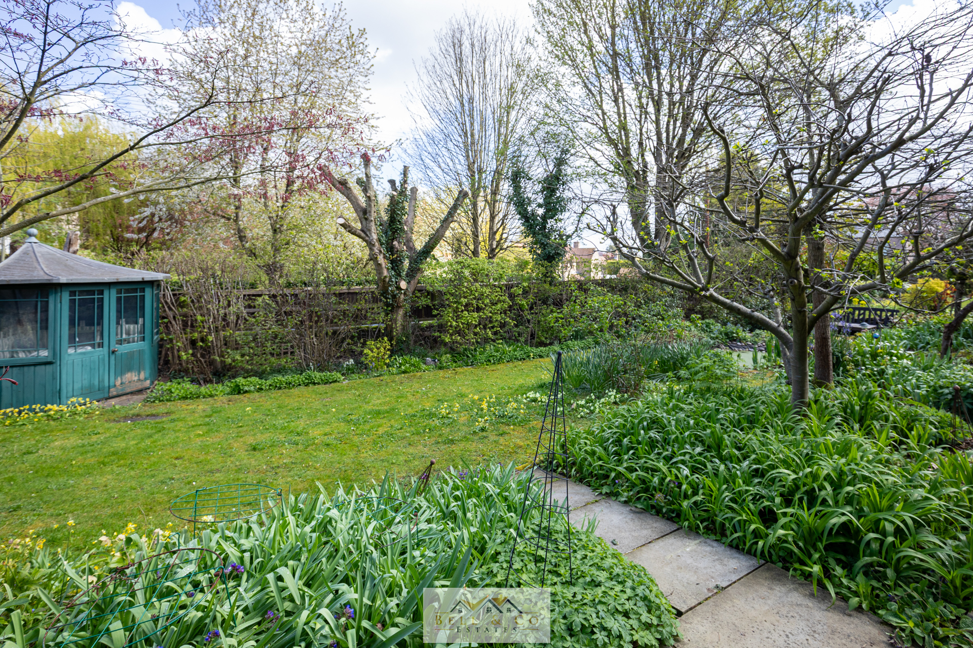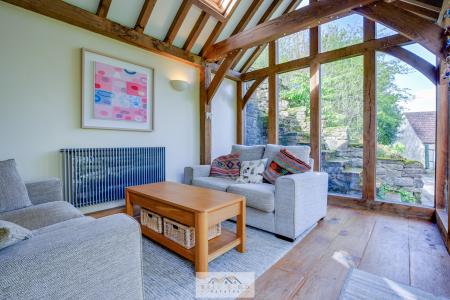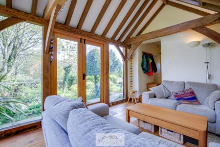 A delightful garden room provides a peaceful retreat, flooded with natural light and offering views over the garden-ideal as a second sitting area, home office or relaxing space.