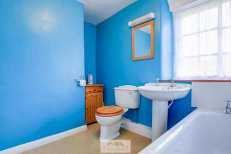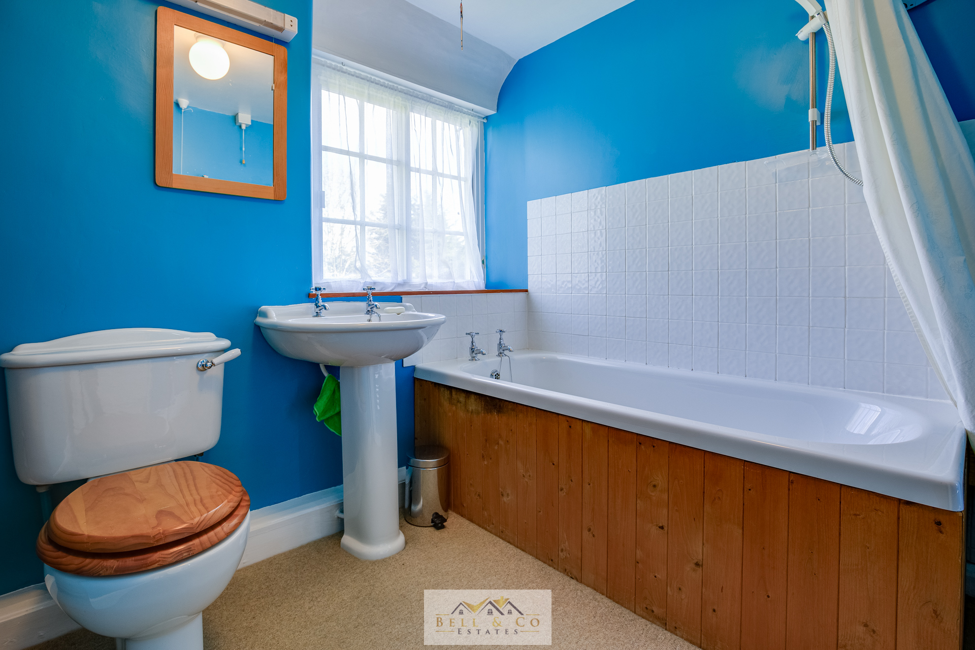 The family bathroom is well-appointed with bath, wash basin and WC. Externally, the property truly stands out.