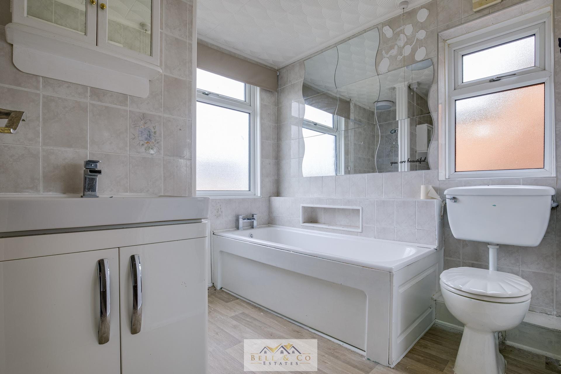 A family bathroom serves all bedrooms benefitting from bath, wash basin and WC, with additional built-in storage available from the landing and bedroom cupboards.