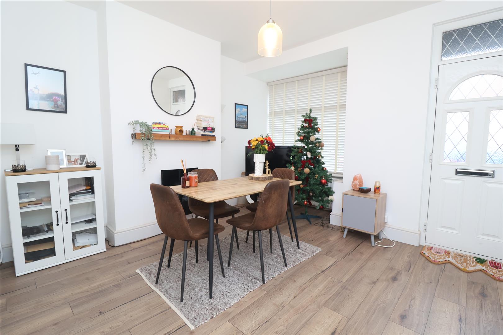 Dining Room - Bright and stylish, the dining room offers ample space for a full dining suite. Finished with modern wood-effect flooring and crisp white walls, the room feels open and contemporary. A large front-facing window provides excellent natural light and makes this a superb space for hosting meals and family gatherings.