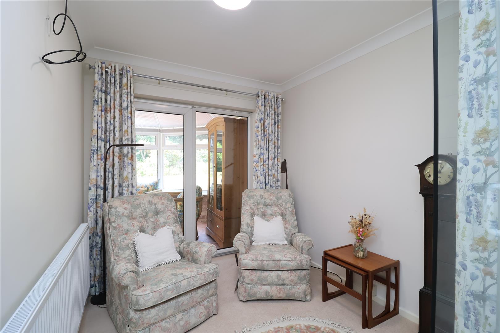 A cosy area perfect as a reading nook or hobby space. Carpeted flooring and door into the conservatory.