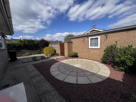 Rear Garden - The low-maintenance rear garden is a charming outdoor space that wraps around the side of the property, offering excellent potential to extend (subject to the necessary planning consent). Designed with ease of upkeep in mind, it features decorative gravel and a circular patio area, ideal for outdoor seating and entertaining. Mature planting and shrubbery add a touch of greenery and privacy. A gated entrance provides access to the driveway and the detached garage.