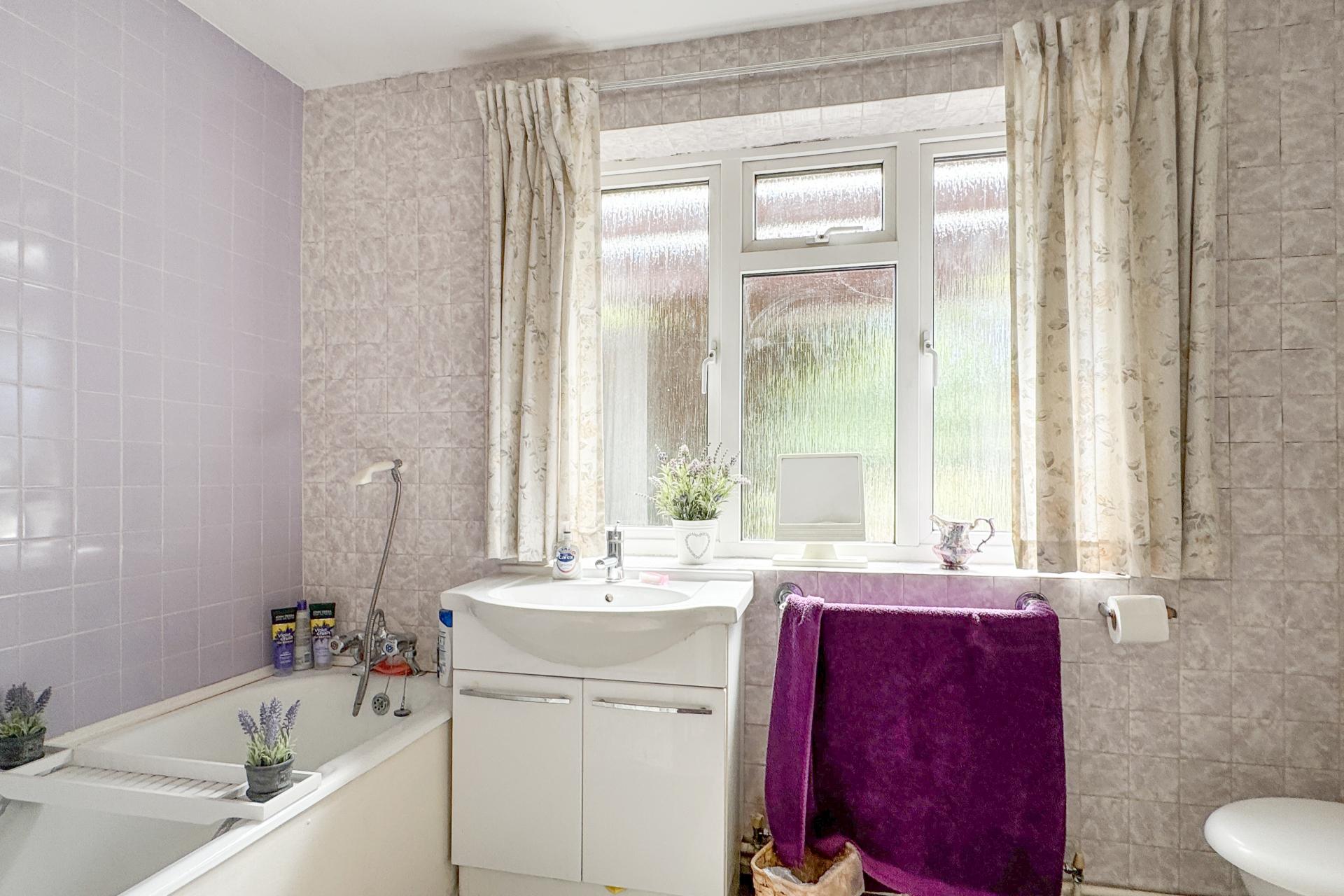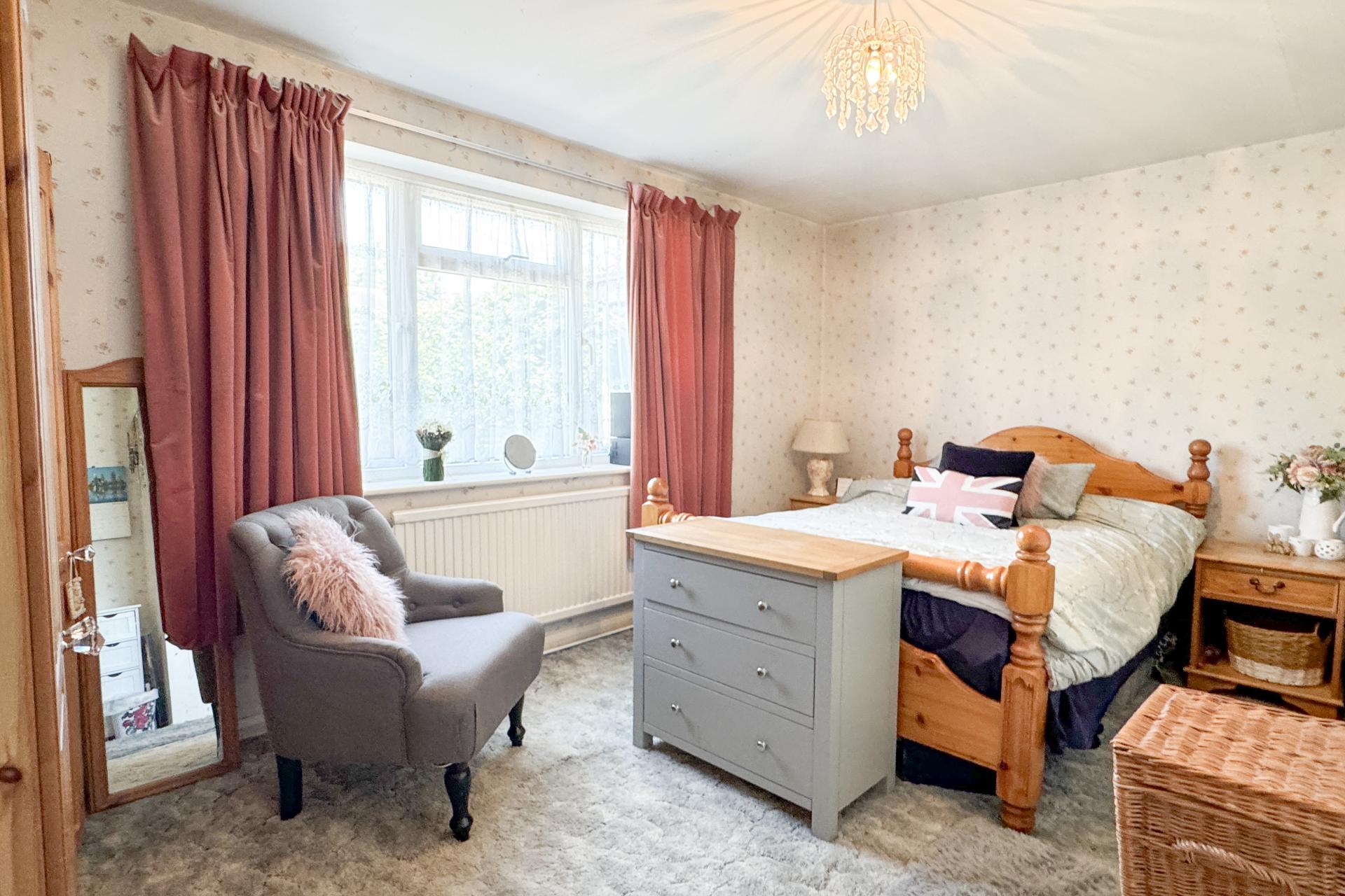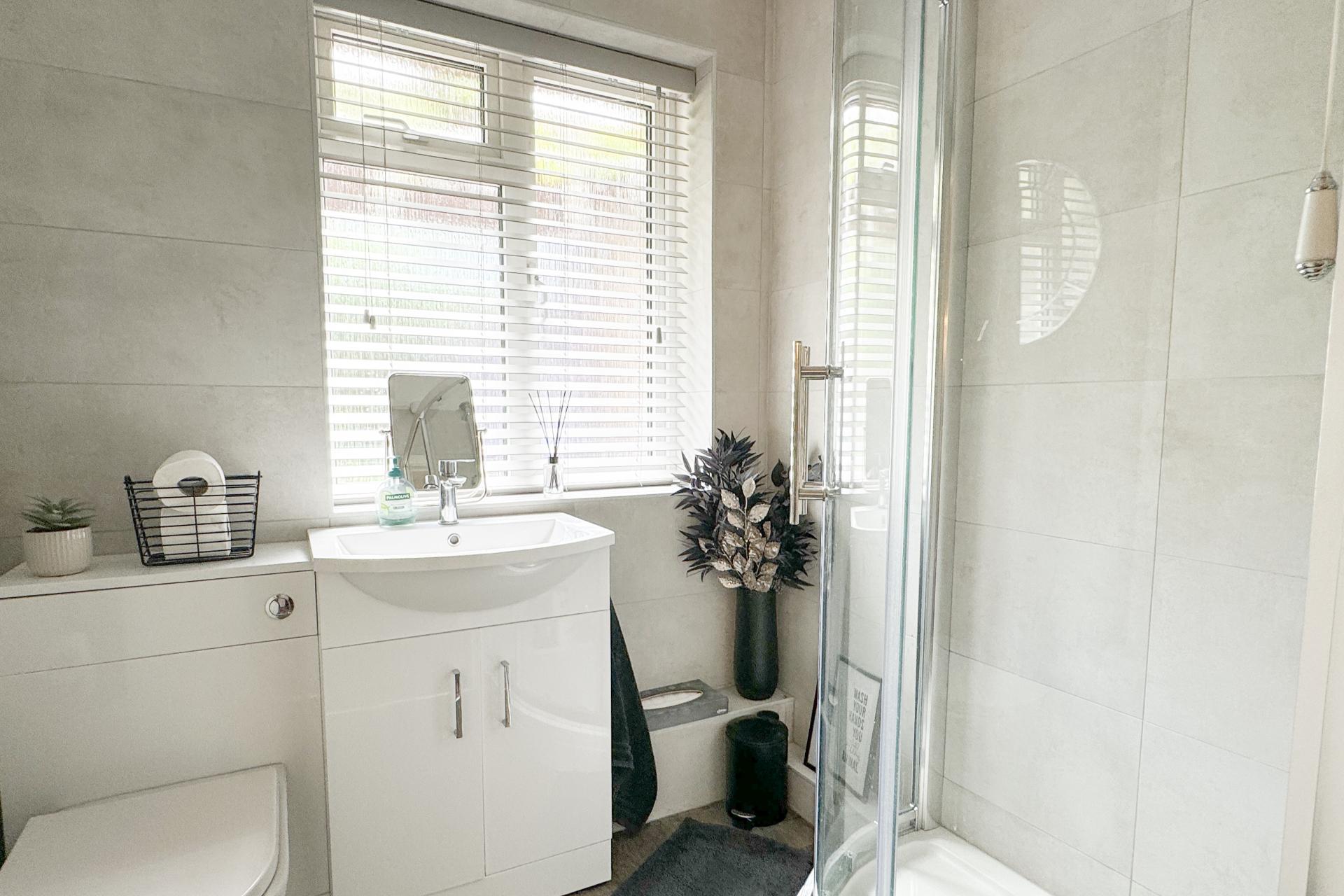 The kitchen is well-appointed with an array of floor and wall units and includes an integrated oven. A glazed door provides easy access to the garden. The kitchen connects to the hallway through another set of glazed doors and features a large built-in cupboard for ample storage. Moving through the hallway, you have access to all three ground floor double bedrooms. Two bedrooms one with fitted wardrobes have a view of the front aspect, the third bedroom, also with fitted wardrobes, overlooks the rear of the property. This floor is completed with a family bathroom, which includes a shower and bath and separate shower room, complete with a toilet, vanity unit, and corner shower.