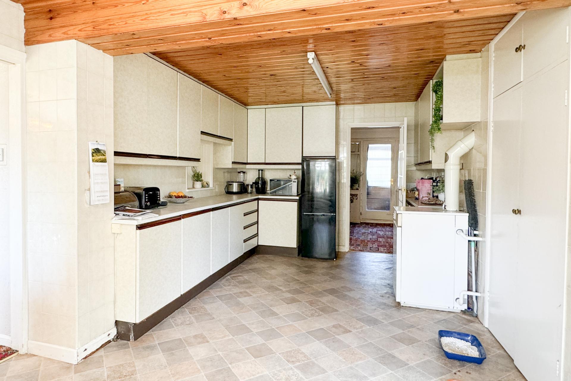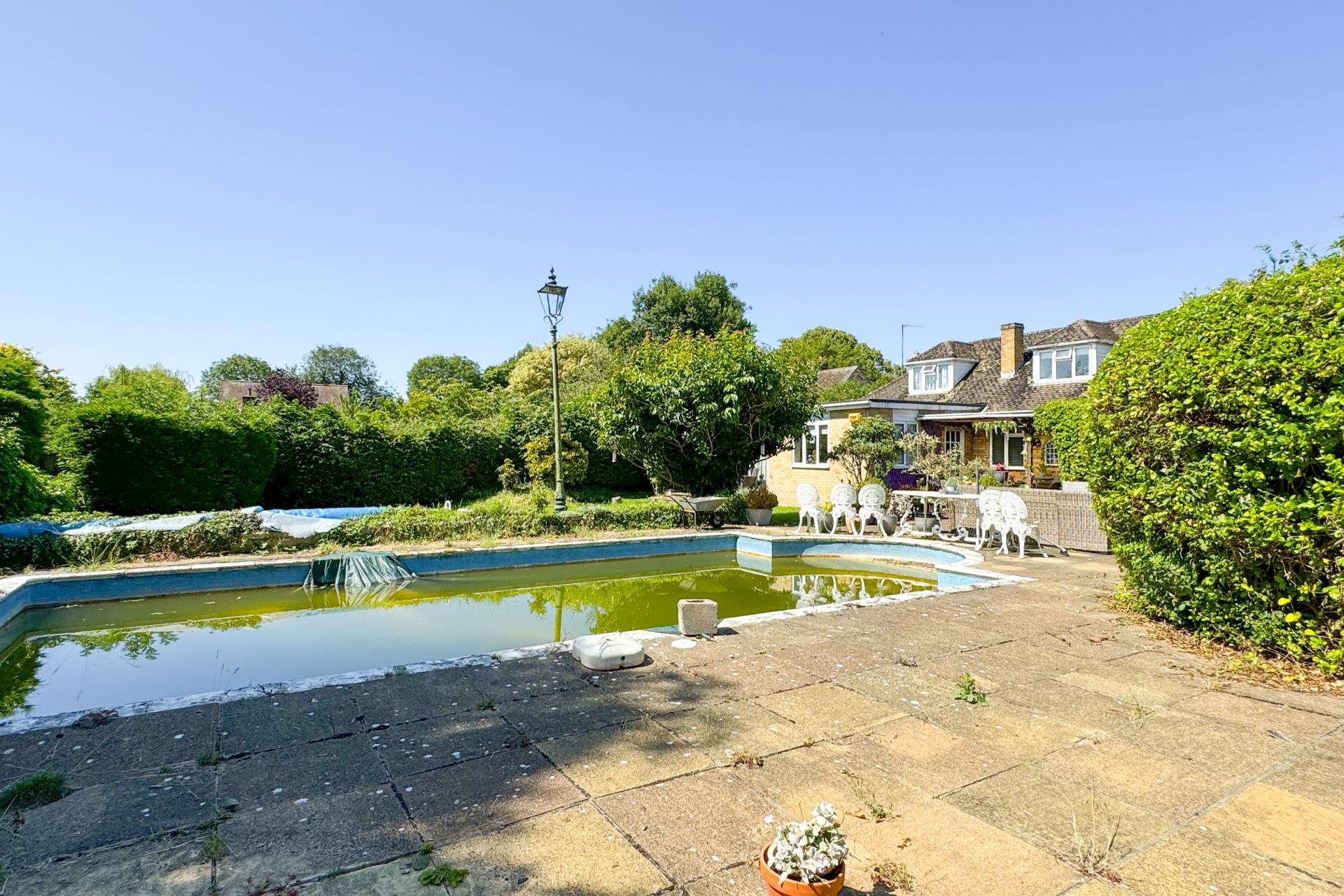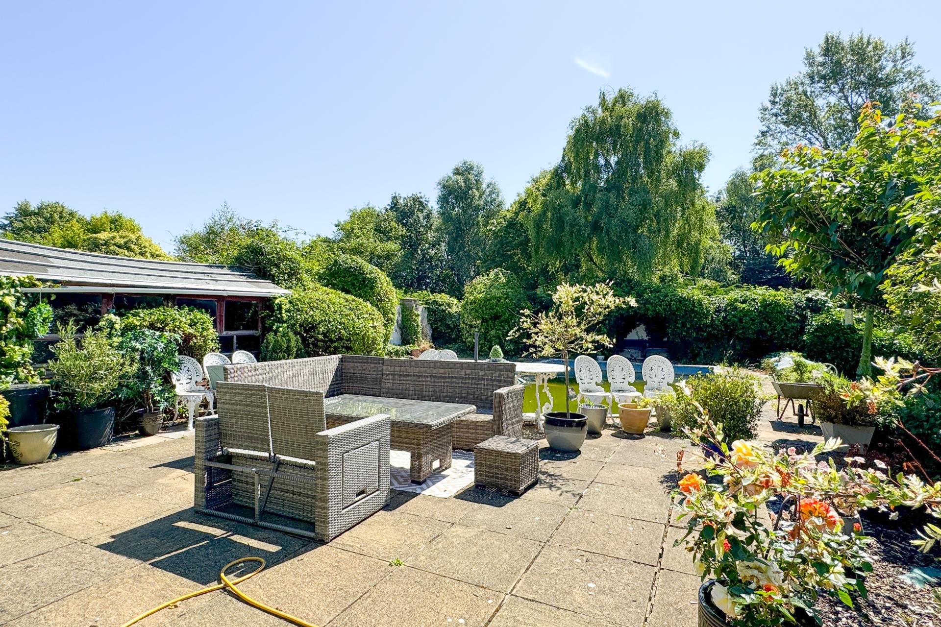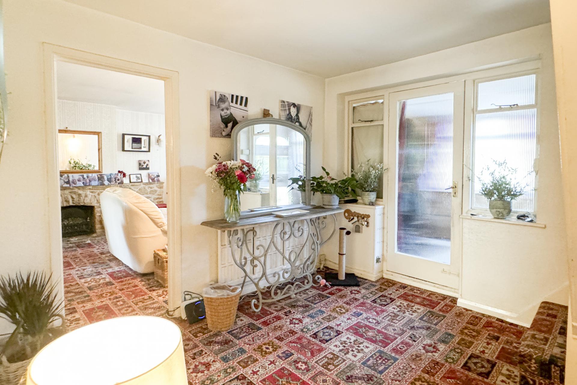 The back door opens onto a charming patio area, complemented a swimming pool, in need of upgrading, and various garden seating areas, perfect for enjoying different locations and views. The garden also features a shed with electricity and a utility room at the end of the property. This utility room offers plenty of space for large fridge freezers, a washing machine, and a tumble dryer.