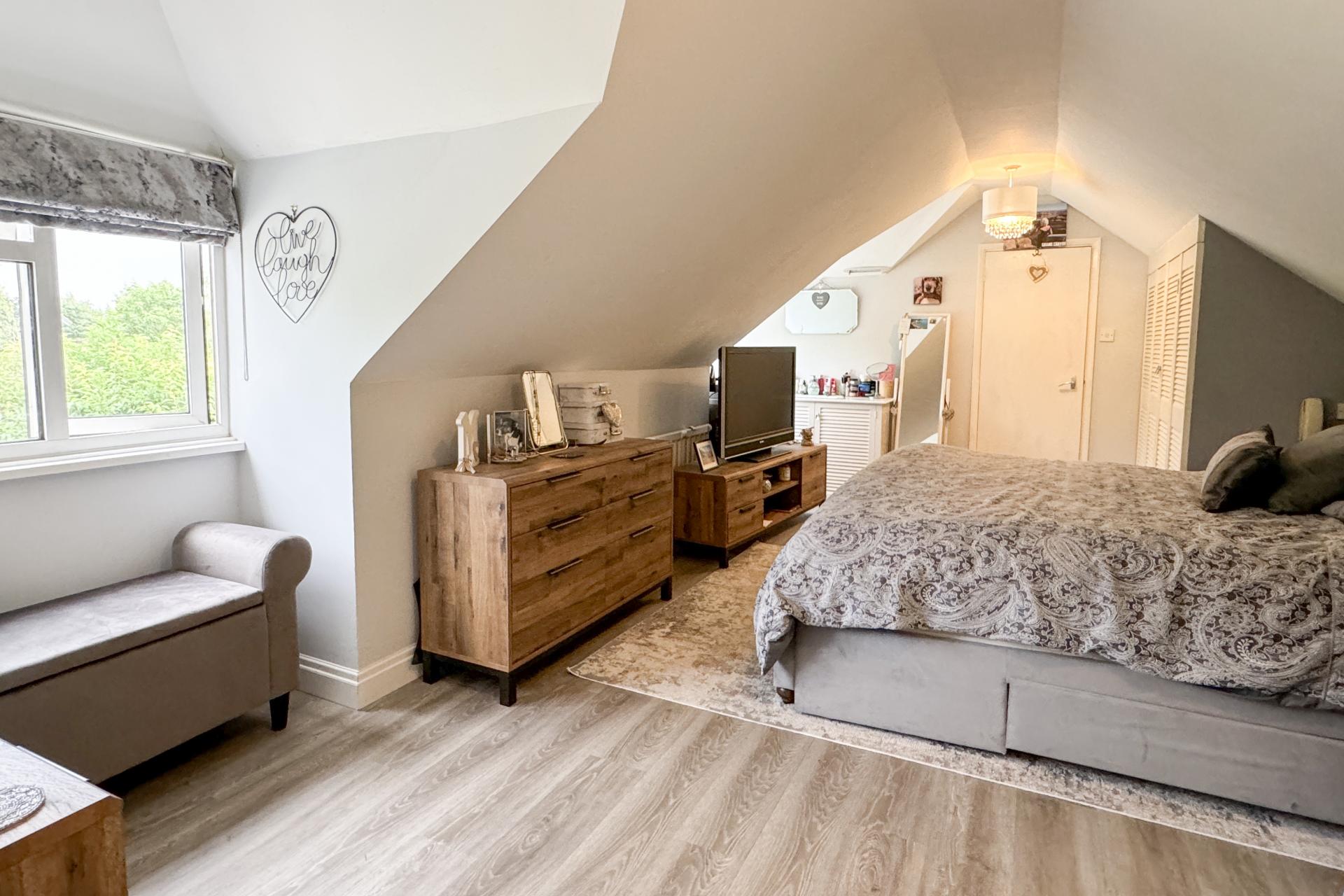 Moving upstairs, the landing leads to the master bedroom, featuring a vanity unit, ample cupboards, and a lovely view of the garden and benefits from a large storeroom (with potential to convert to an ensuite) The fifth bedroom completes the floor.