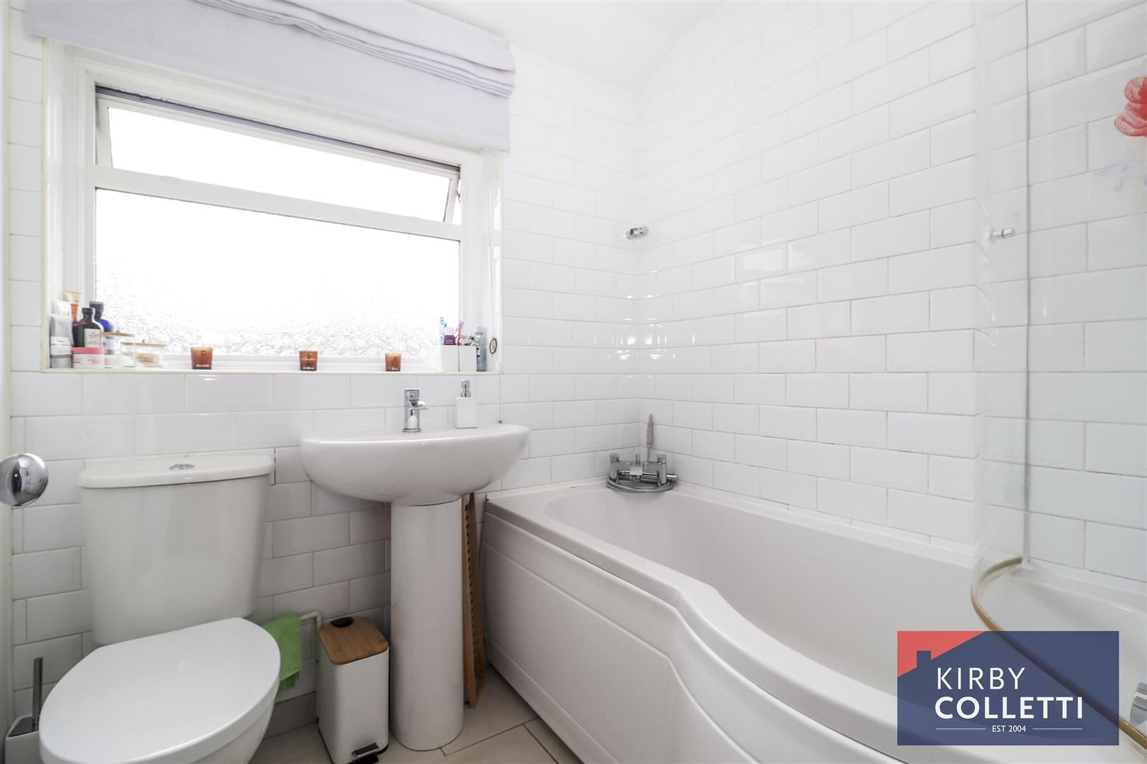 Re-Fitted Bathroom - 1.85m x 1.68m (6'1 x 5'6) - Rear aspect uPVC double glazed window. White suite comprising p-shaped bath. Mixer tap and shower attachment over. Wall mounted shower and shower screen. Pedestal wash hand basin. Low level W.C. Radiator. Three walls fully tiled. Tiled floor.