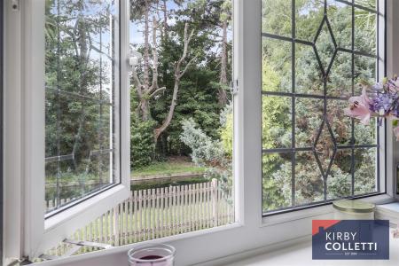 Lounge/Dining Room - 6.68m x 4.24m max (21'11 x 13'11 max) - Front aspect uPVC double glazed bow window with views over The New River. Understairs storage cupboard. TV point. Two radiators. Recessed spotlights. Wooden flooring. uPVC double glazed sliding patio door to rear garden. Access to: