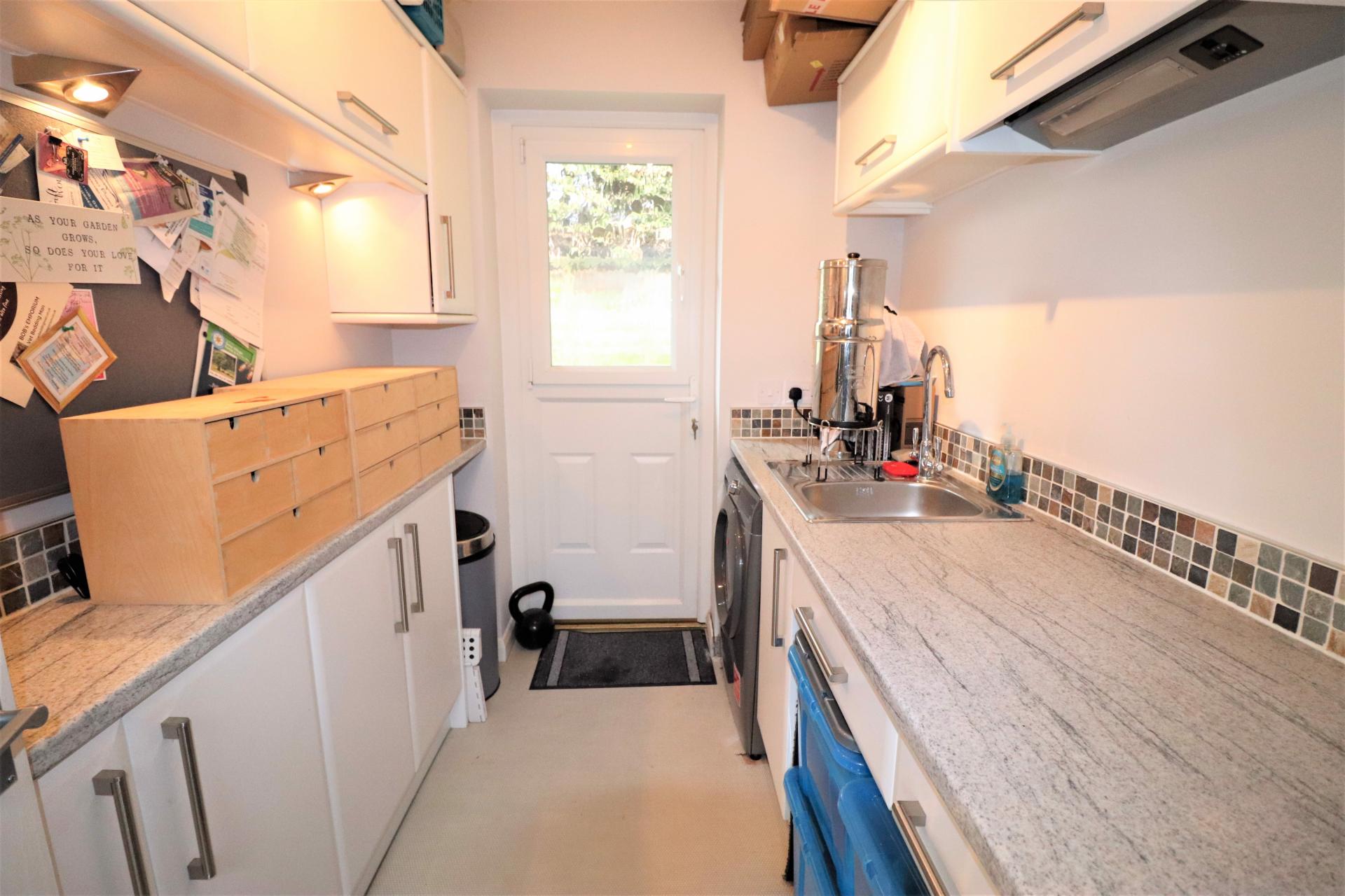 Double glazed door to the rear. Roll edge worktops with single bowl, single drainer sink unit with mixer tap. Range of base units and drawer with matching wall mounted cupboards. Space and plumbing for a washing machine.