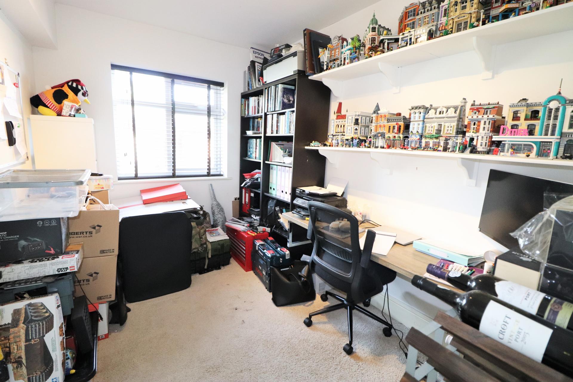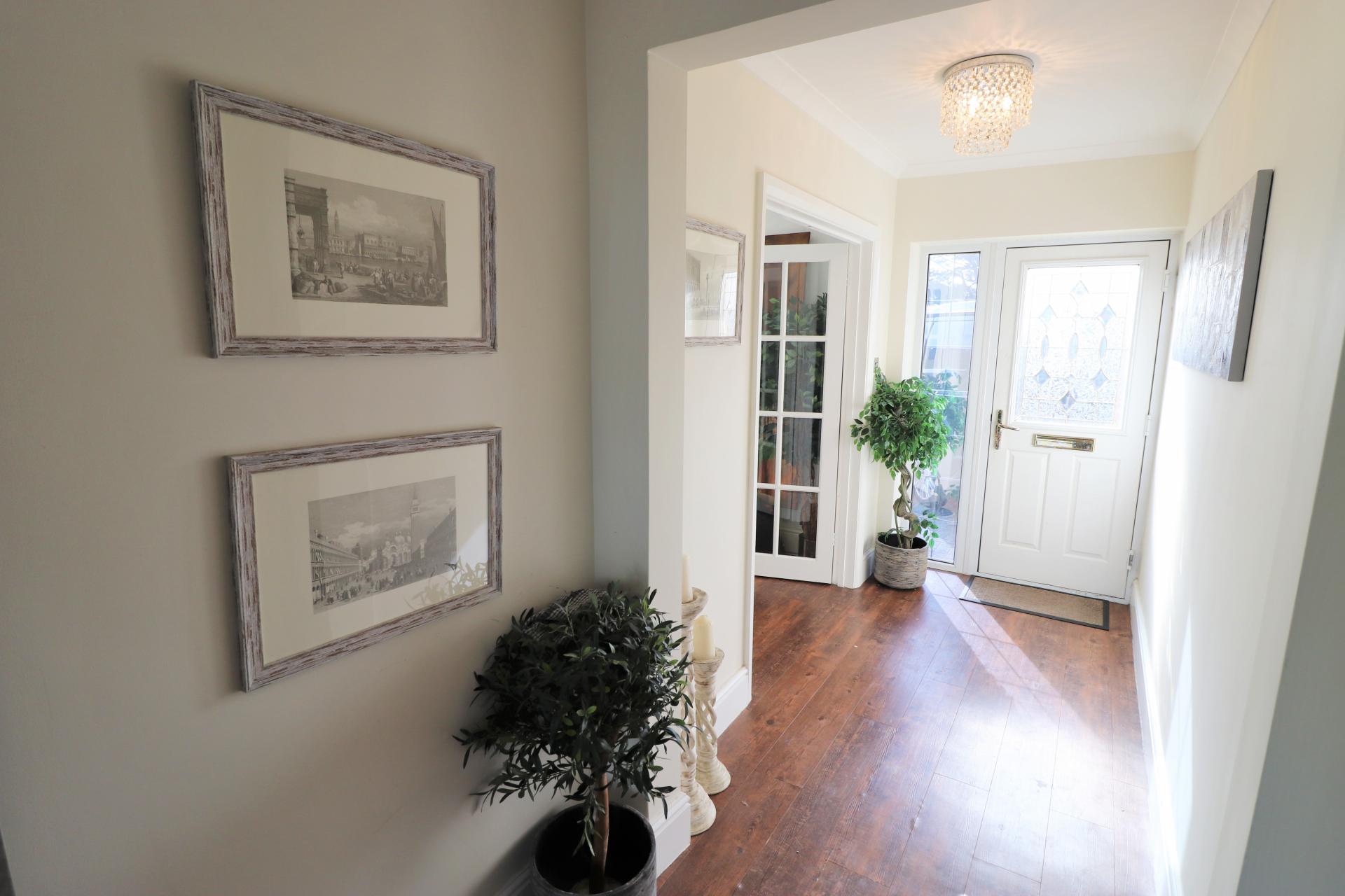 Double glazed front door. Leaded light double glazed window to the front. Two double width storage cupboards. Bespoke vertical metal radiator. Loft access.