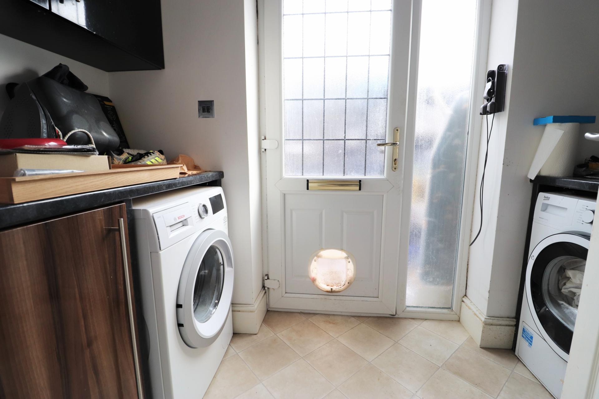 Leaded light double glazed door to the side. Additional Double glazed window to the side. Space and plumbing for a washing machine. Space for a tumble dryer. Worktops and cupboards.