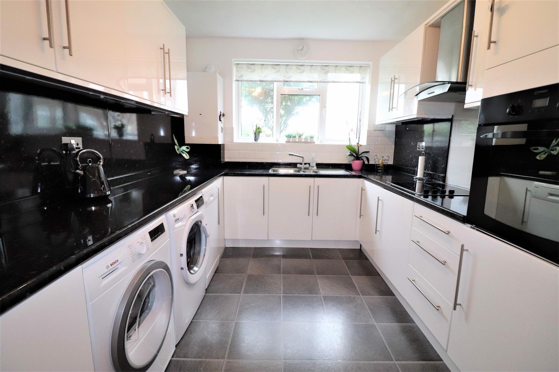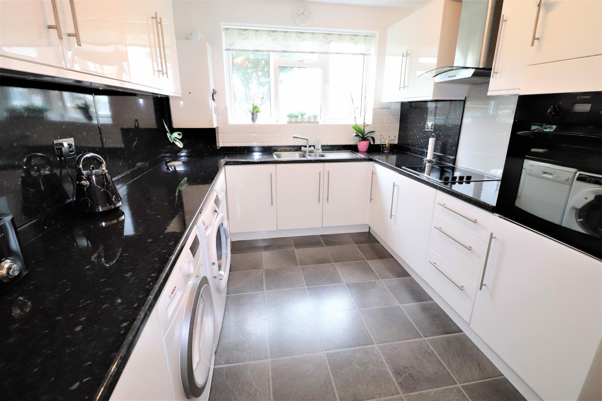 Double glazed window to the rear. Roll edge worktops with inset stainless steel one and a half bowl, single drainer sink unit with mixer tap. Range of base units and drawers with matching wall mounted cupboards. Built in oven. Four ring hob with stainless steel extractor hood over. Space and plumbing for both a washing machine and dishwasher. Space for tumble dryer. Double panel radiator.