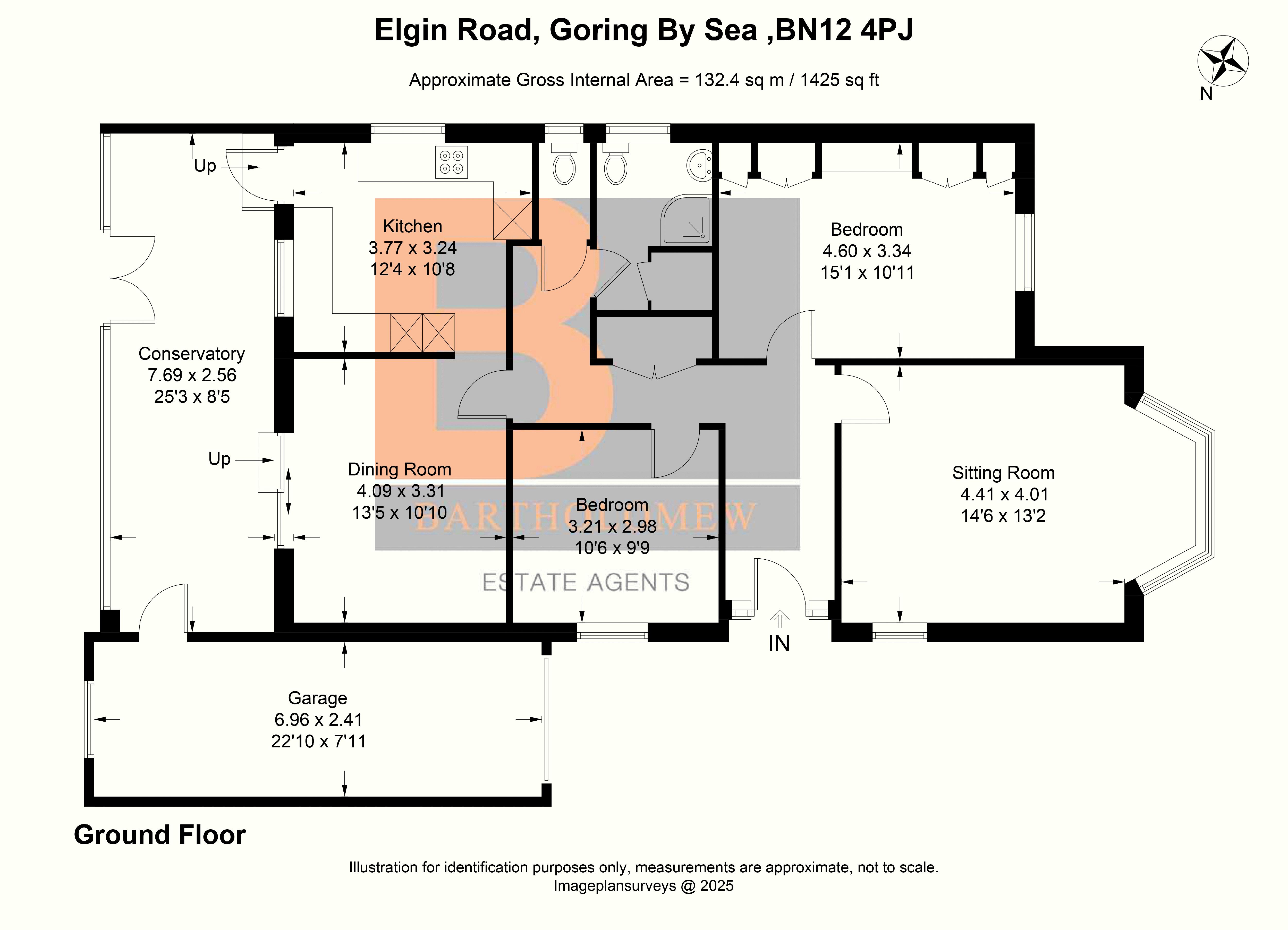 Up and over door to the front. Glazed door to the side giving access from the sun room. Window to the rear. Power and light.