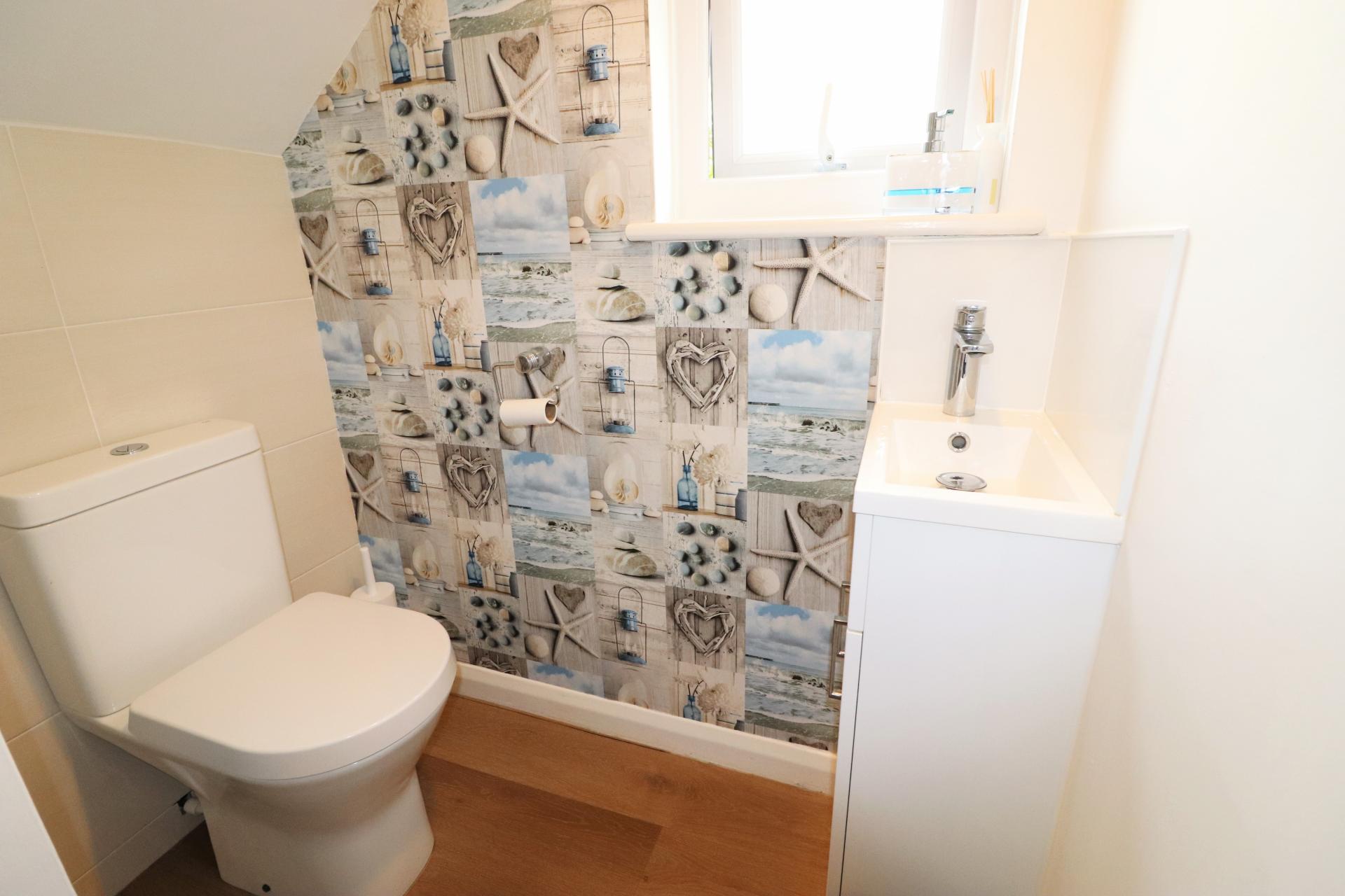 Double glazed window to the rear. Low level WC. Wash hand basin with vanity cupboard below. Double panel radiator.