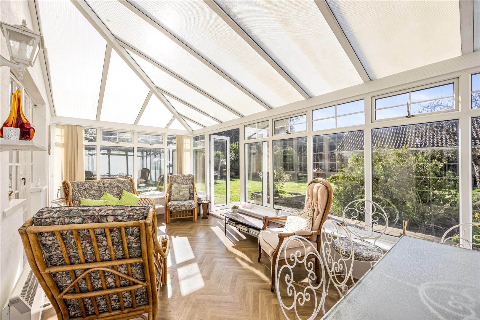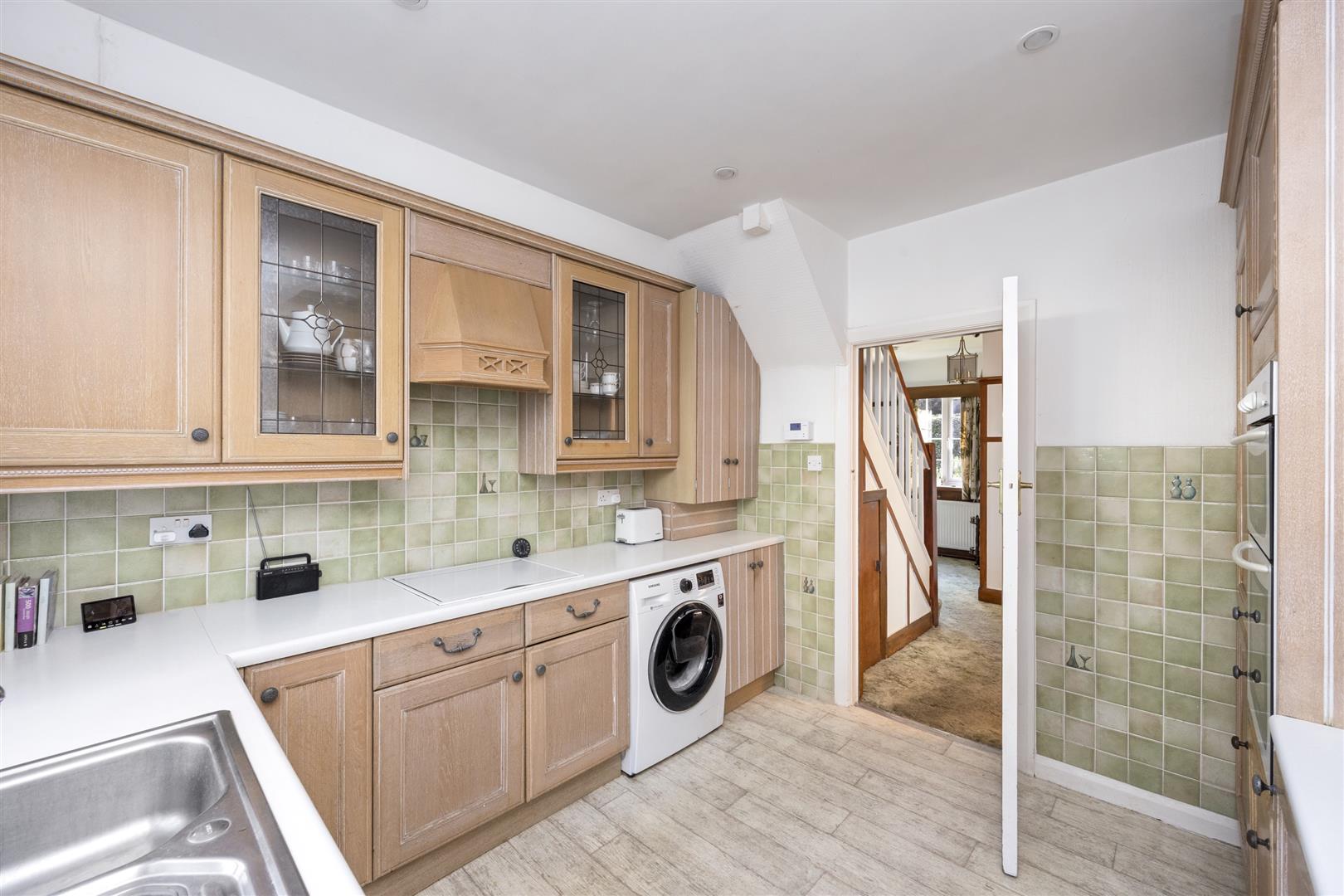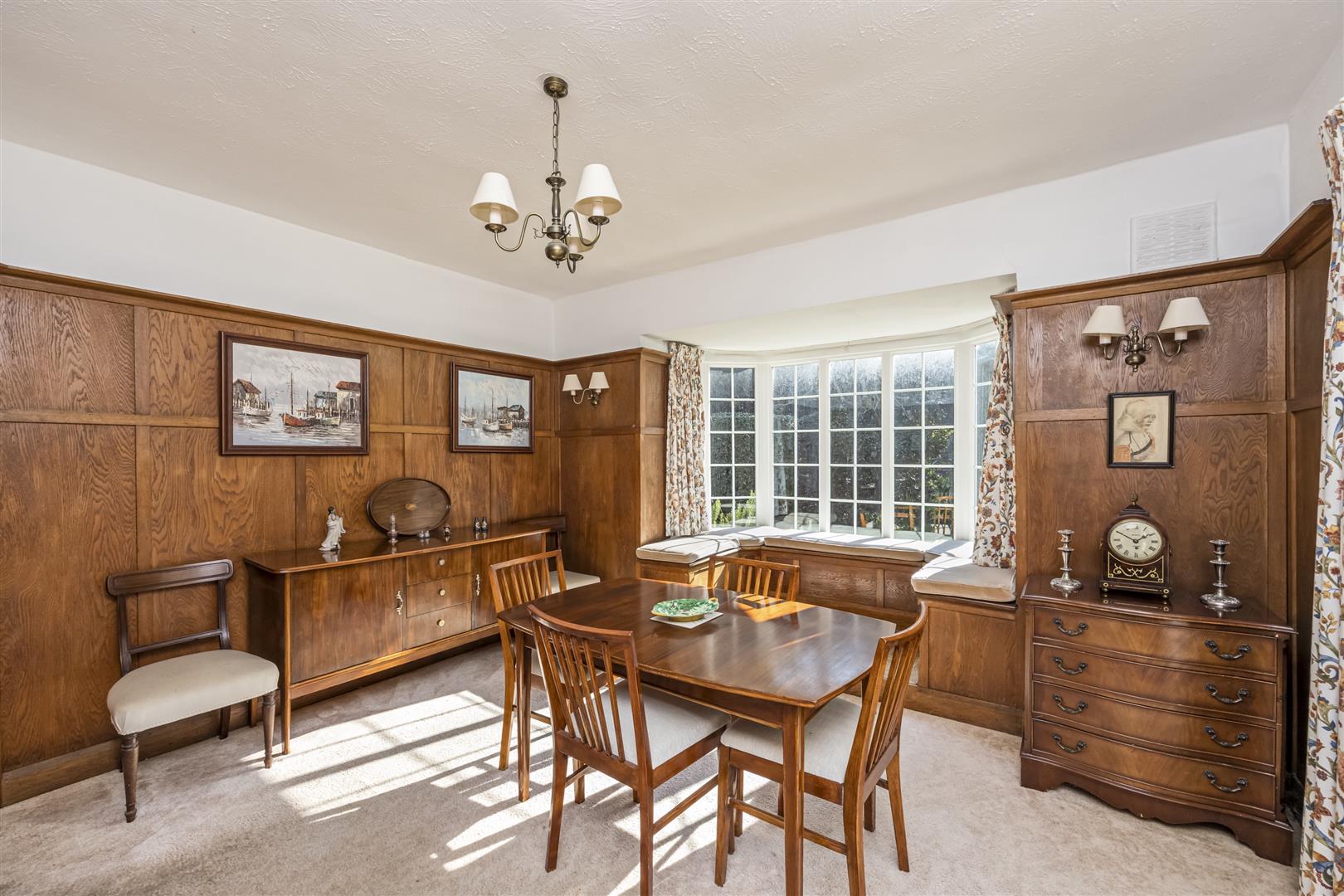 The property welcomes you via an archway leading to a covered entrance and a solid wood front door opening into a spacious entrance hall, complete with a ground floor cloakroom. The bay-fronted, triple-aspect living room is a wonderfully bright space, centred around a charming feature fireplace. A separate bay-fronted dining room enjoys built-in seating within the bay and French doors that open into a UPVC double glazed conservatory, an ideal spot to relax while enjoying views over the garden.