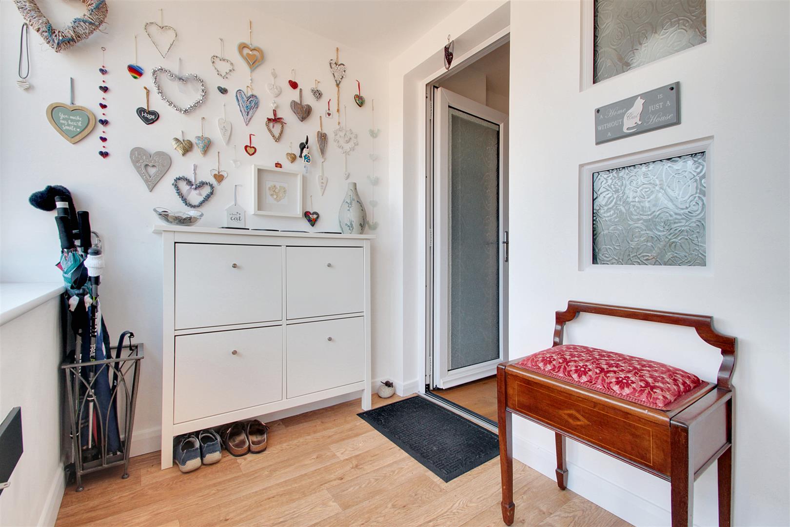 Spacious entrance porch with cupboard