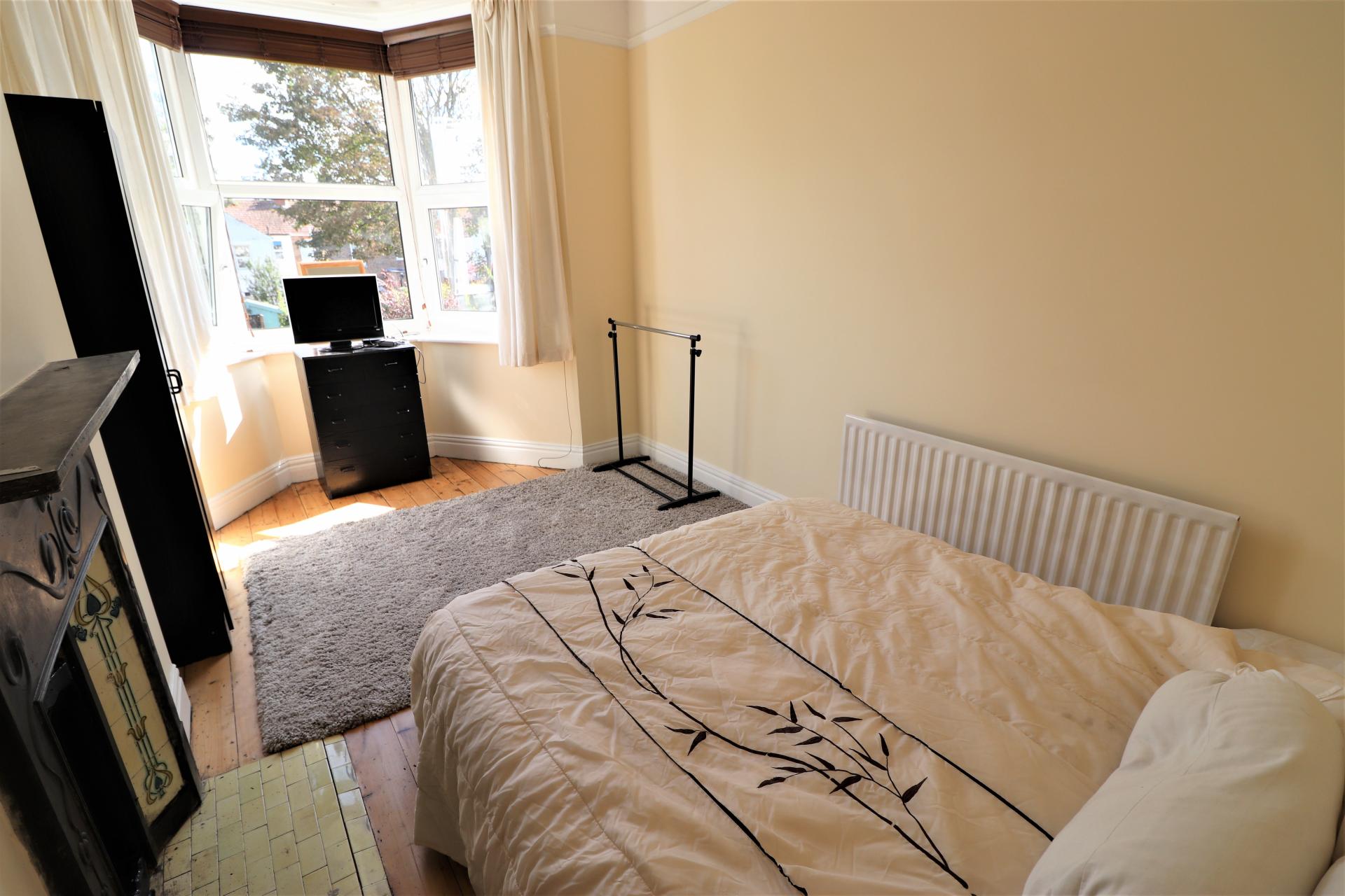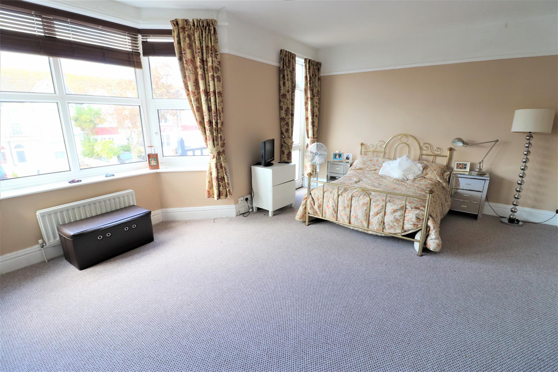 Double glazed bay window to West aspect, built in wardrobes, two radiators, carpet, picture rail, double glazed door to West facing balcony.