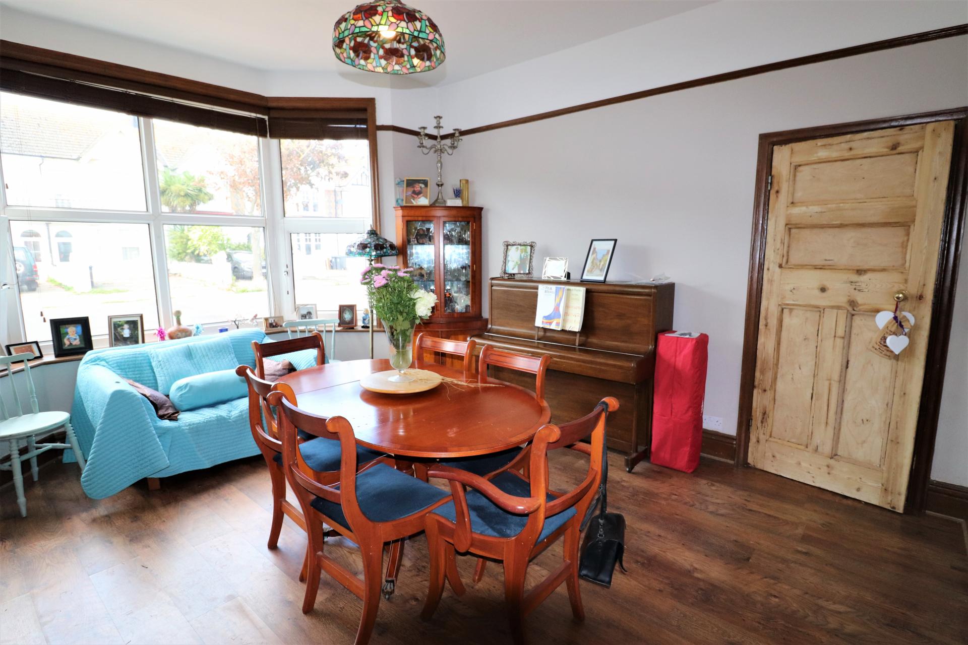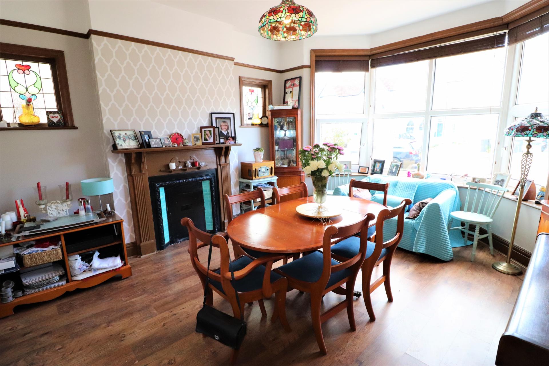 Double glazed bay window to rear aspect overlooking garden, restored fireplace with electric inset, radiator, original flooring, picture rail.