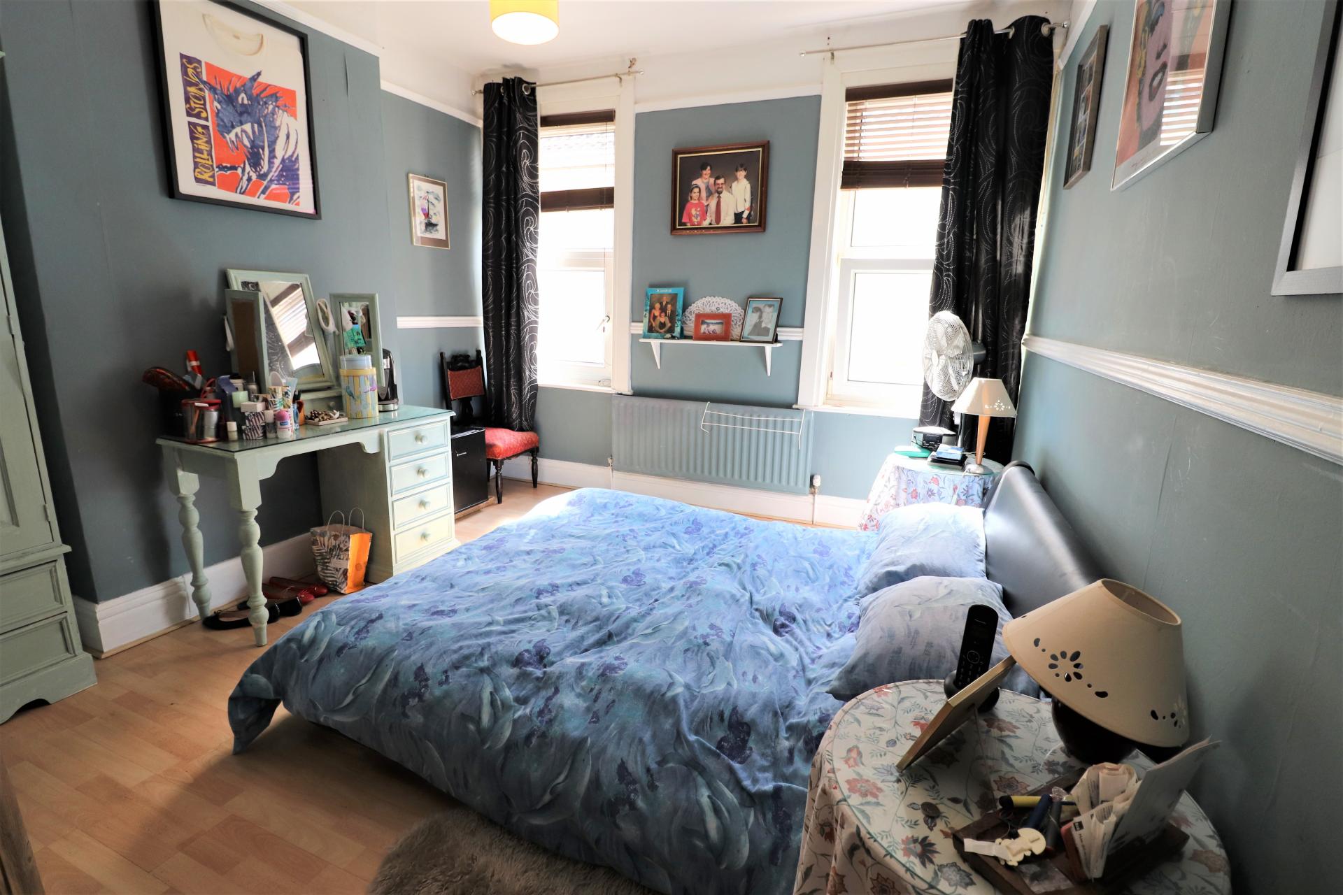Two double glazed windows to South aspect, radiator, picture rail, dado rail, laminate flooring.