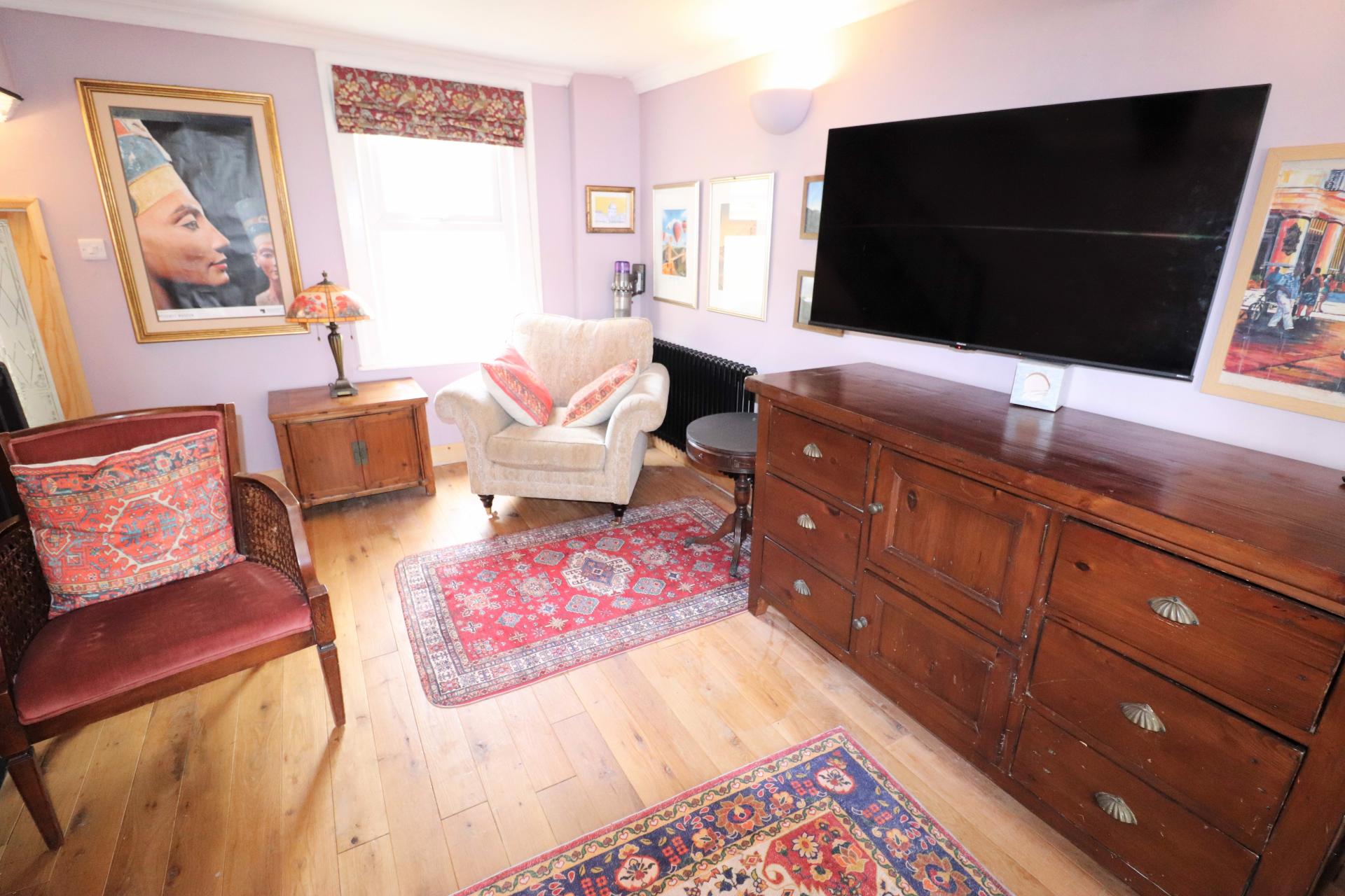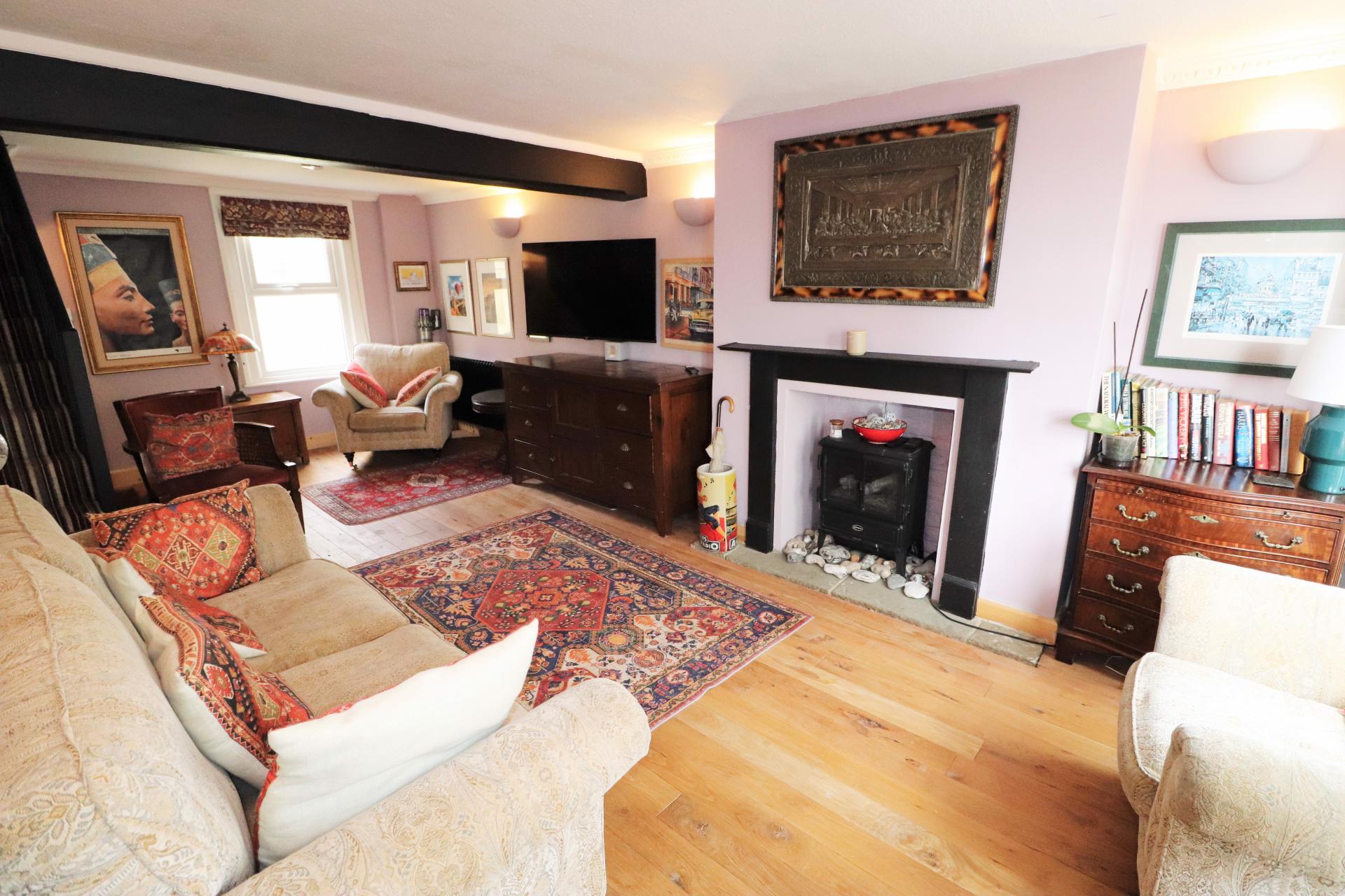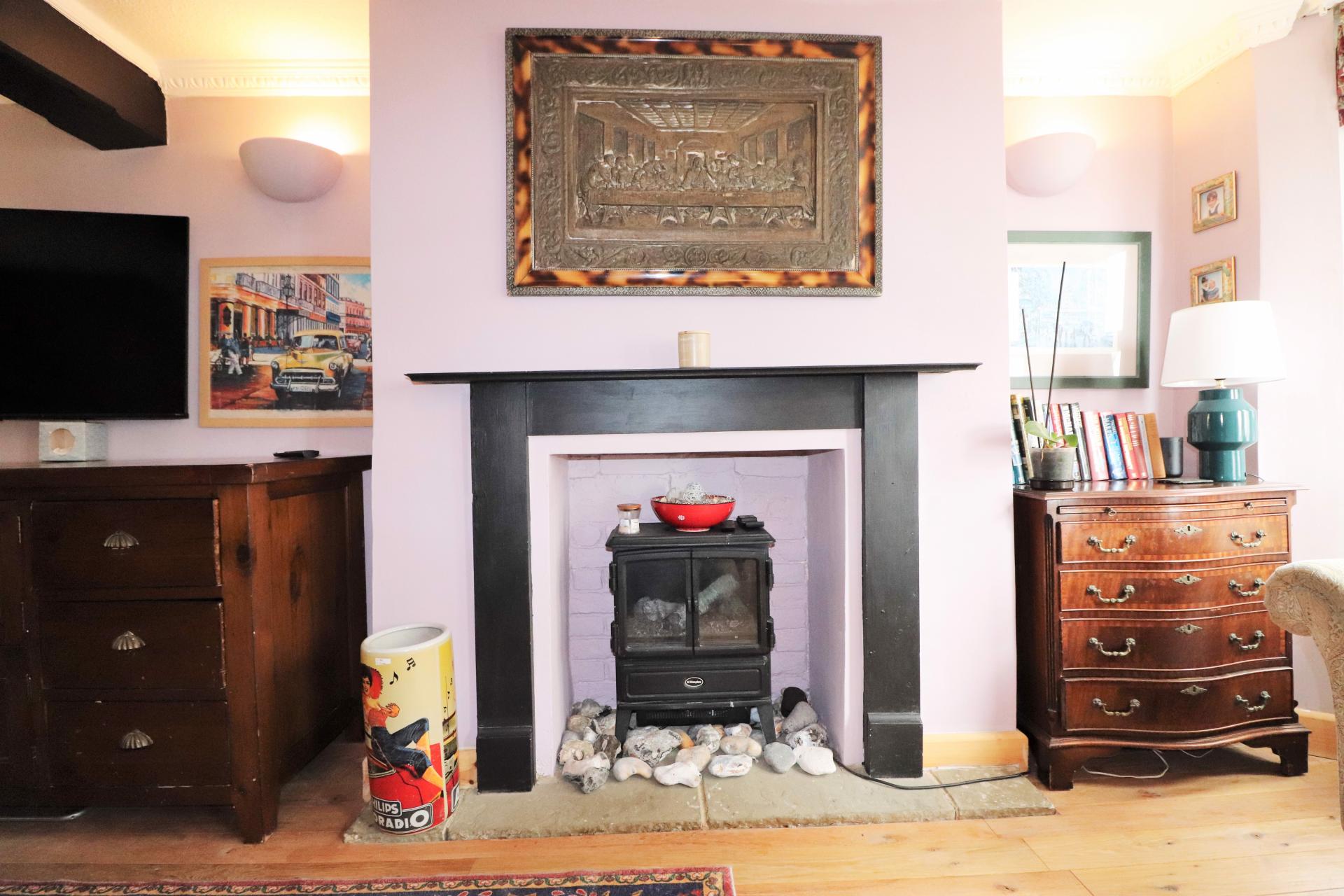 Double glazed front door. Double glazed bay window to the front and a double glazed window to the rear. Electric wood burner effect fireplace with timber surround and mantle with a stone hearth. Two Victorian style fireplaces. New flooring.