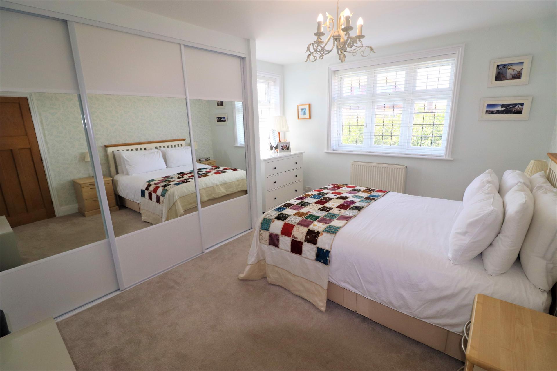 Double aspect room with double glazed, leaded light windows to the side and rear. Triple, mirror fronted, fitted wardrobe. Double panel radiator.