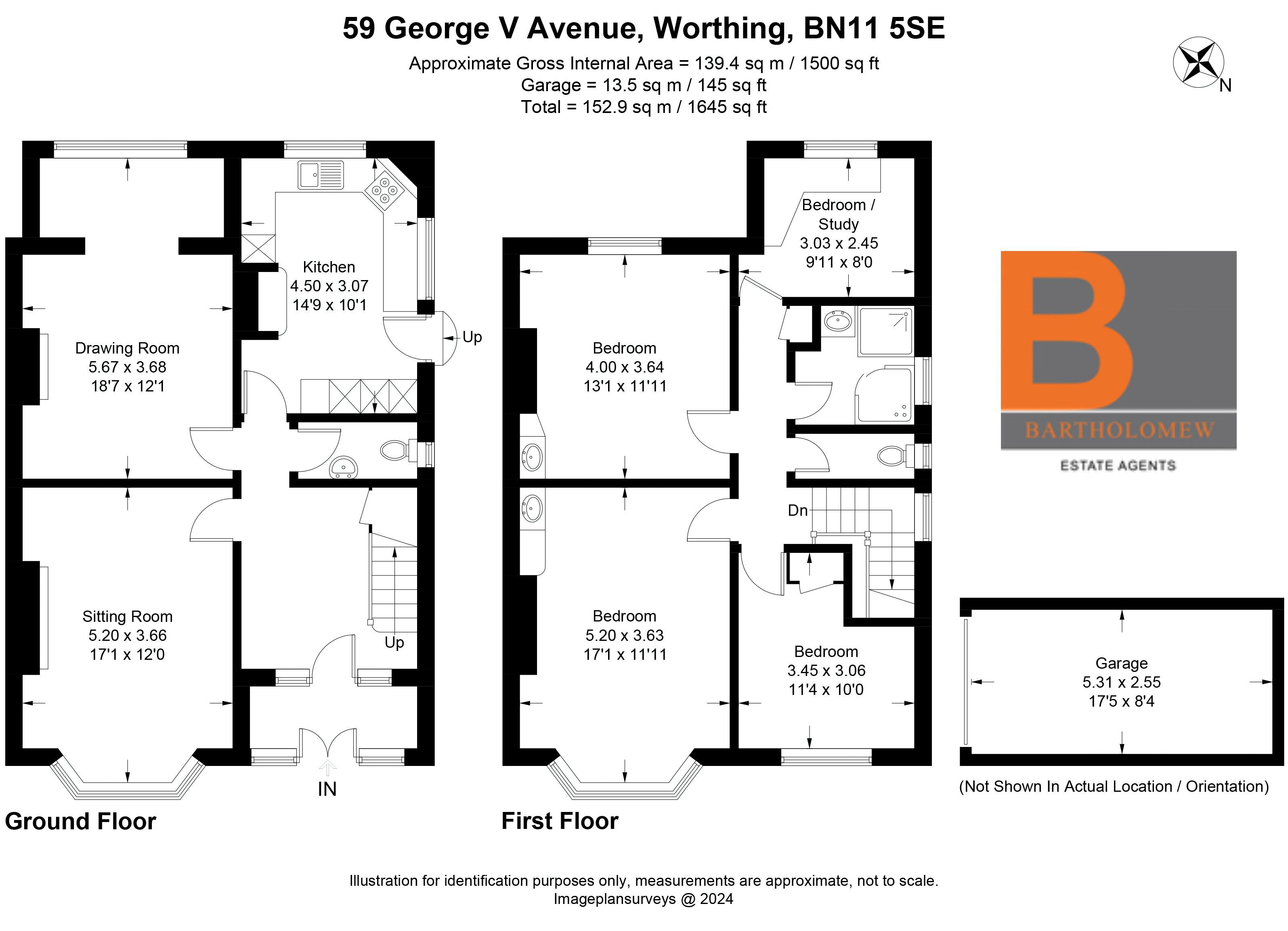 Loft access via a pull down ladder, mostly boarded with power and light.