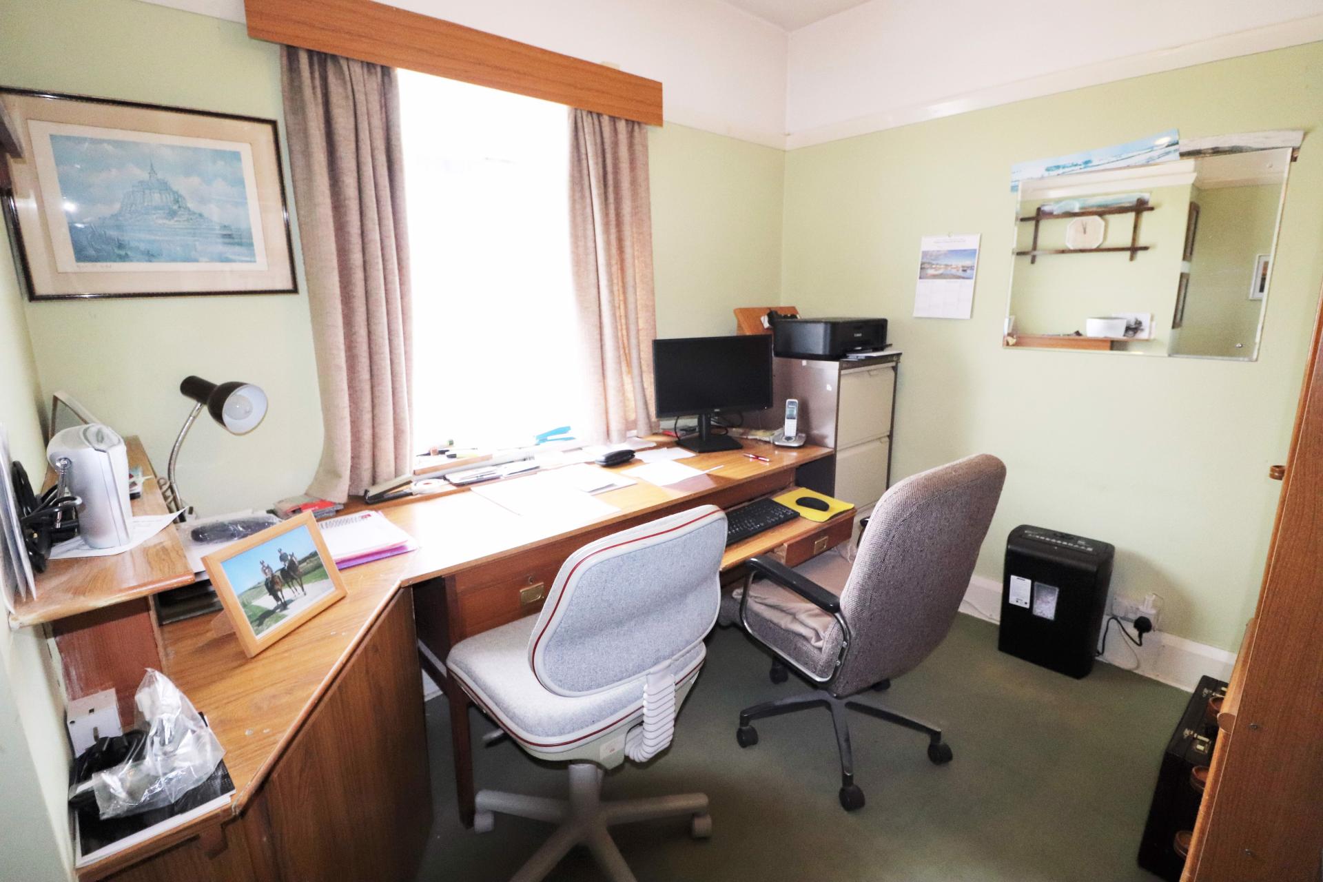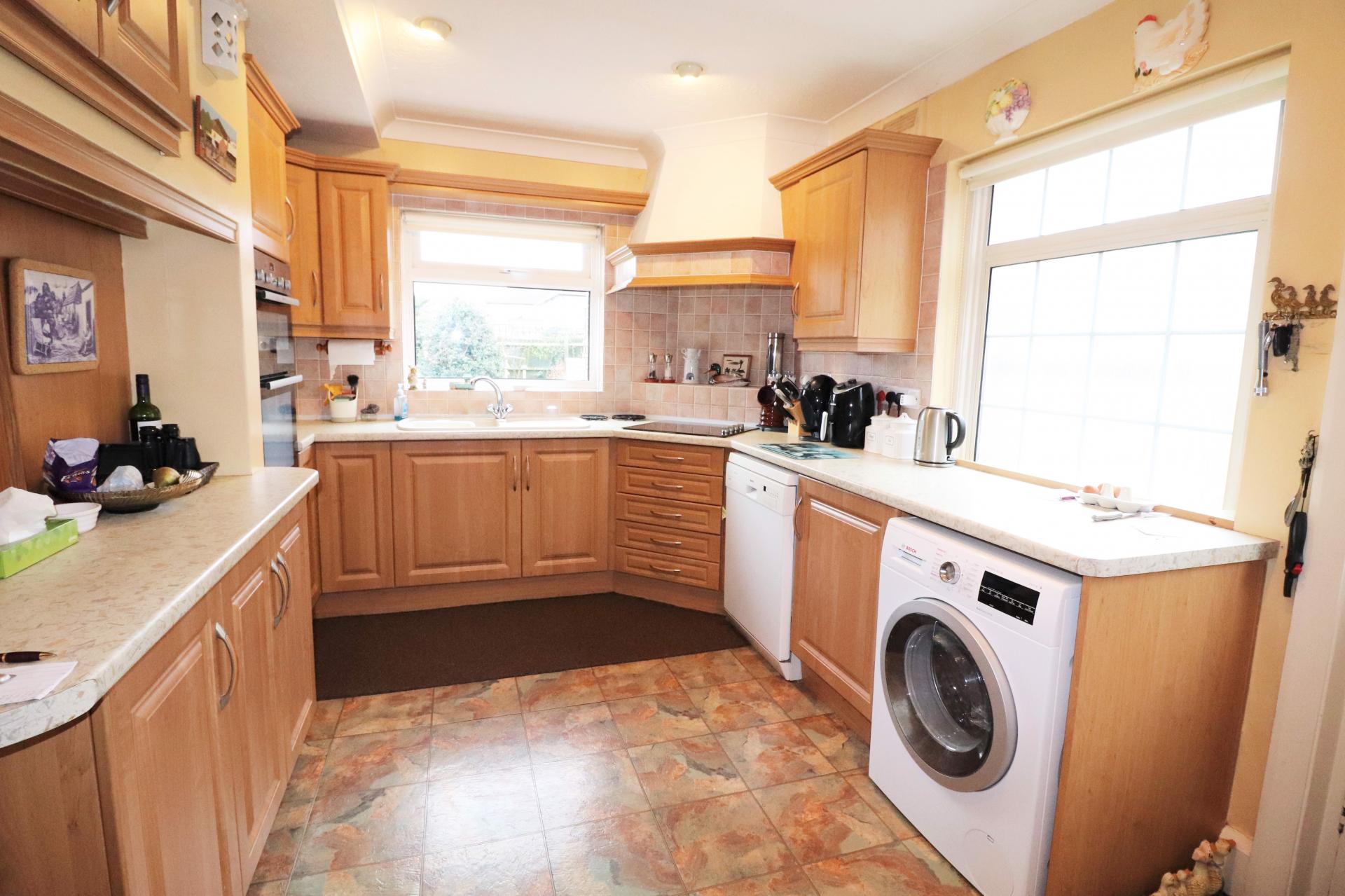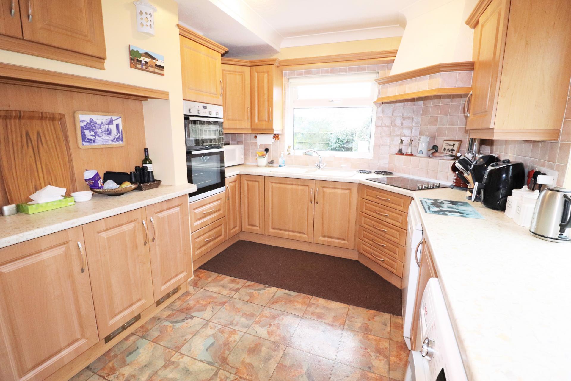 Double glazed windows to the side and rear. Glazed door giving side access. Roll edge worktops with inset single bowl, single drainer sink unit with mixer tap. Range of base units and drawers with matching wall mounted cupboards. Double oven. Four ring hob with extractor unit over. Space and plumbing for a washing machine and a dishwasher. Integrated fridge freezer. Double panel radiator.