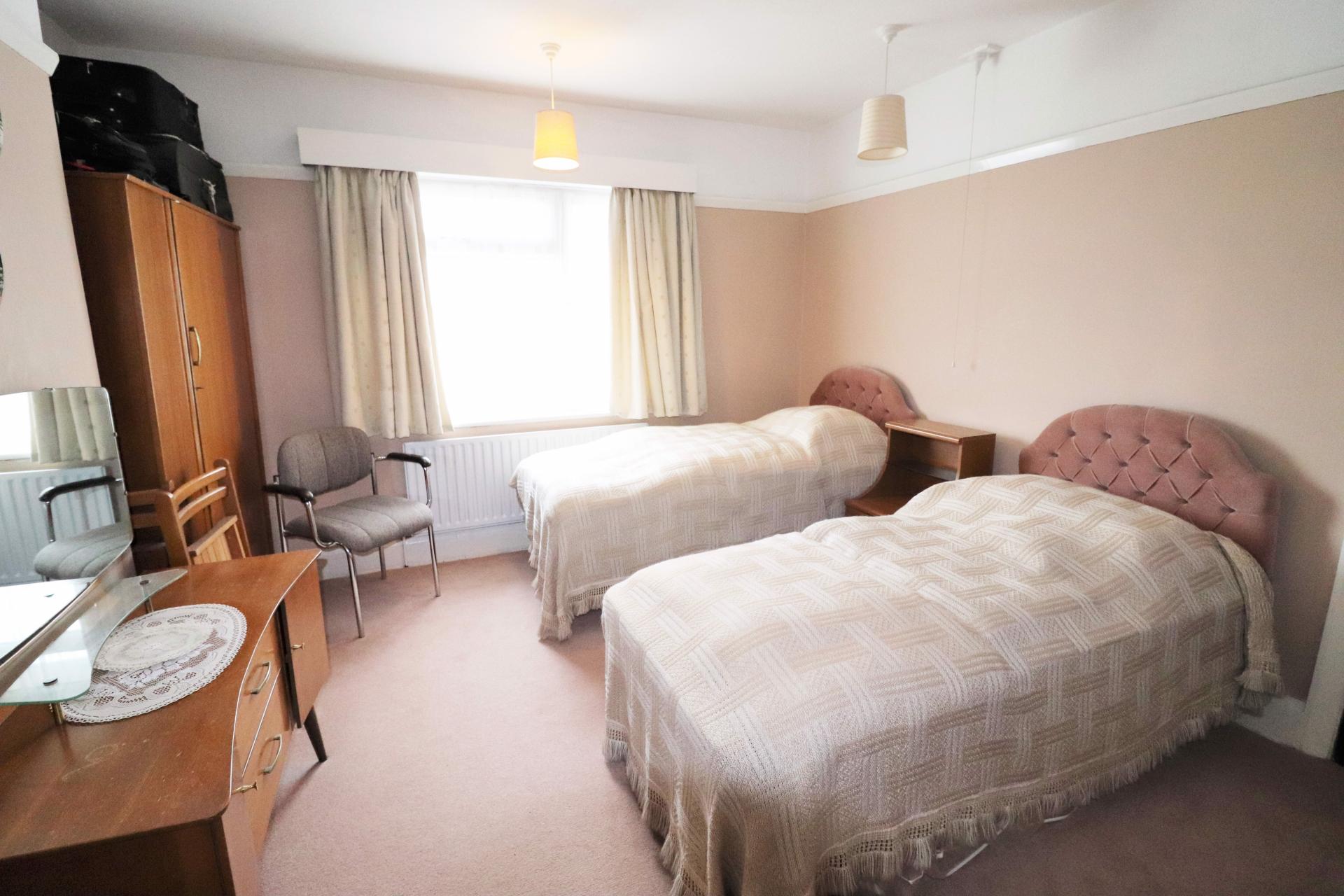 Double glazed bay window to the front. Wash hand basin with vanity cupboard below. Single panel radiator. Picture rail.