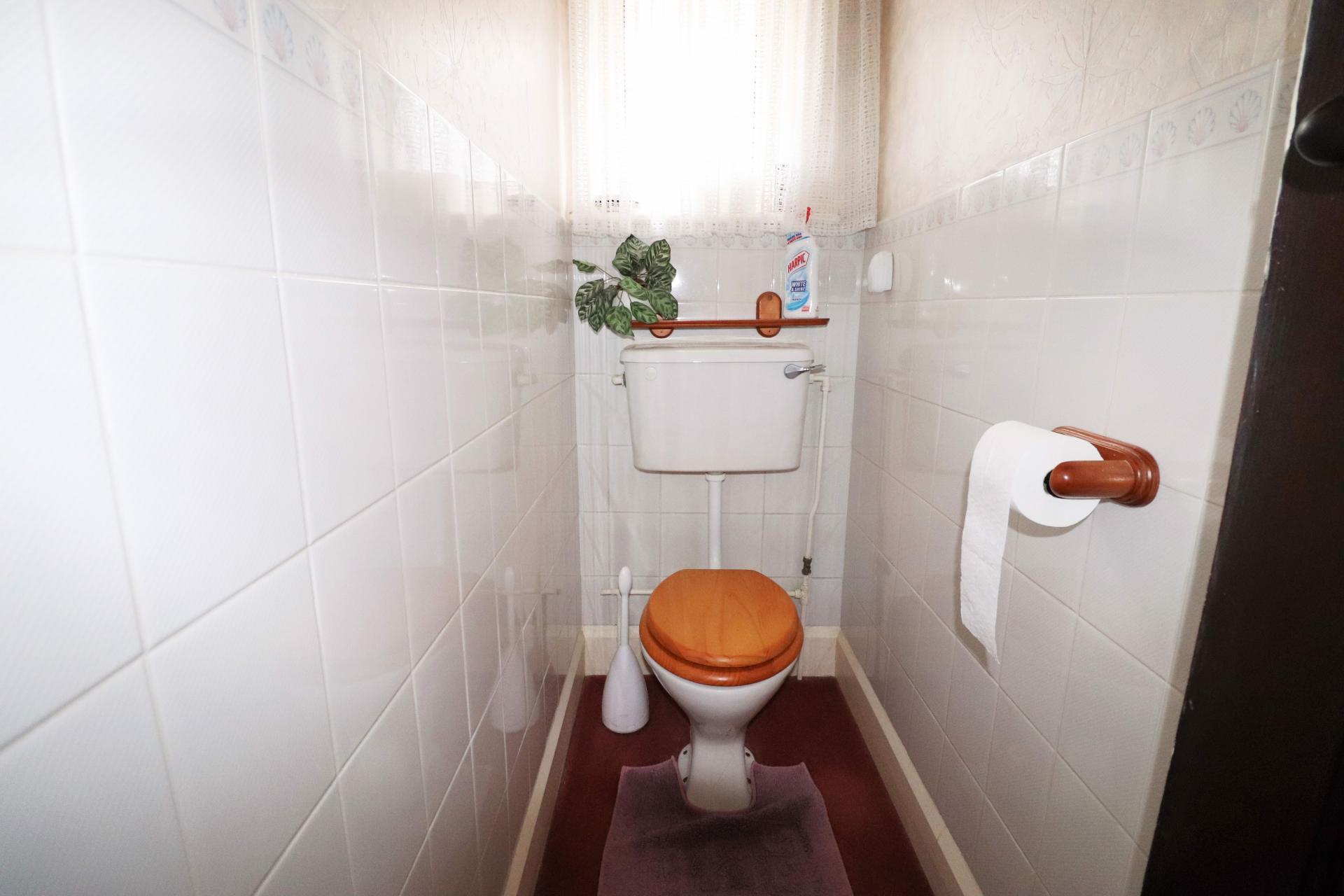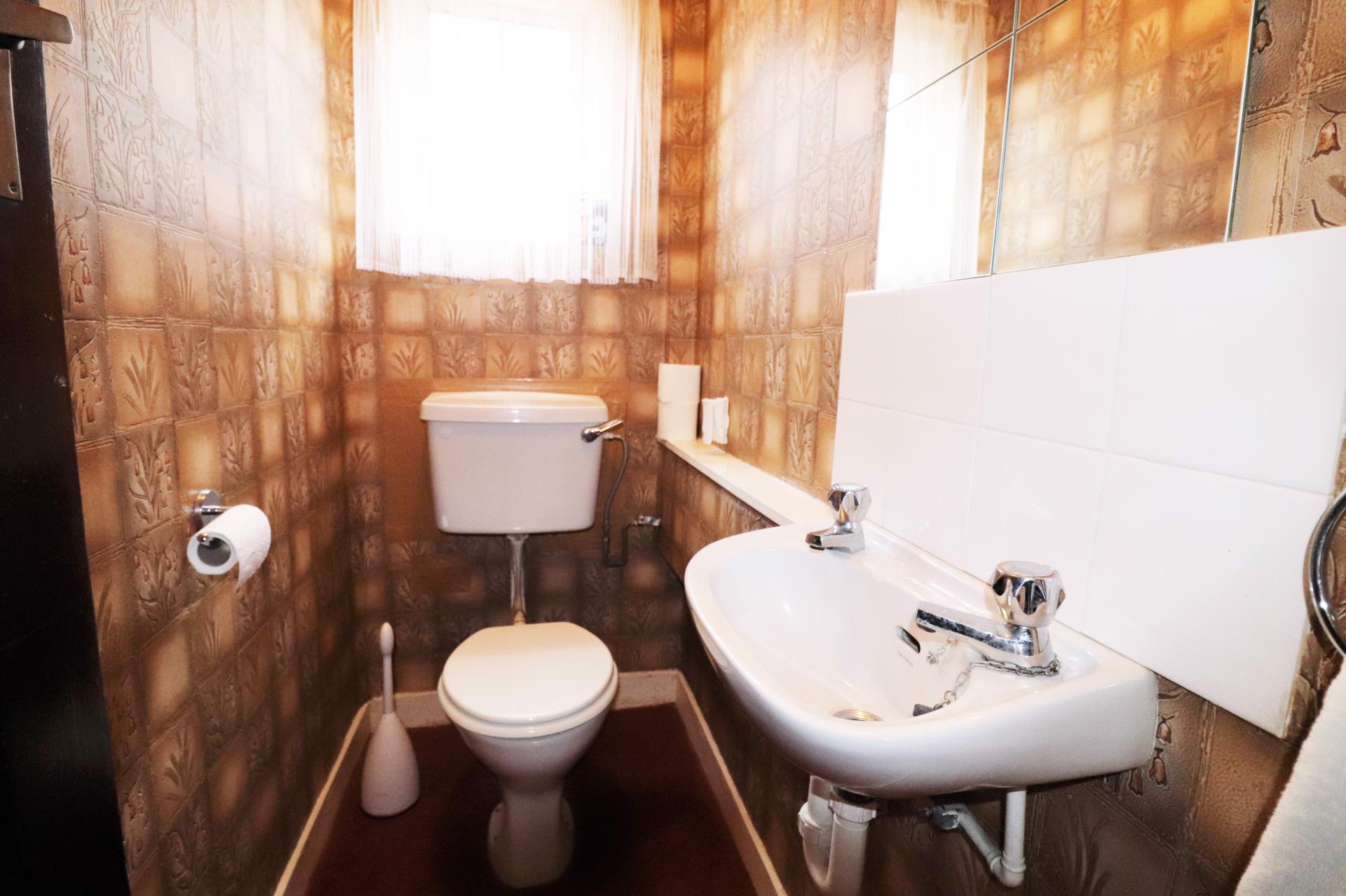 Double glazed window to the side. Low level WC. Wash hand basin.