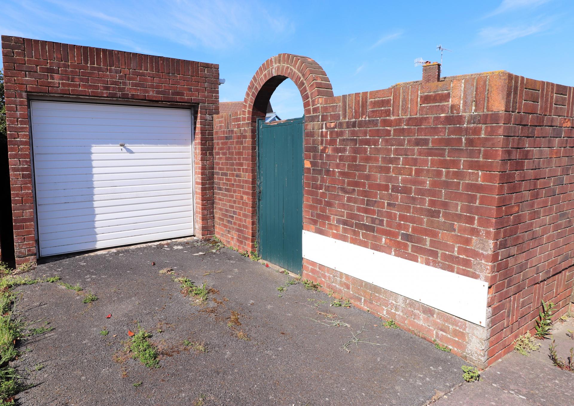Up and over door. side access door leading to rear garden. Off road parking space