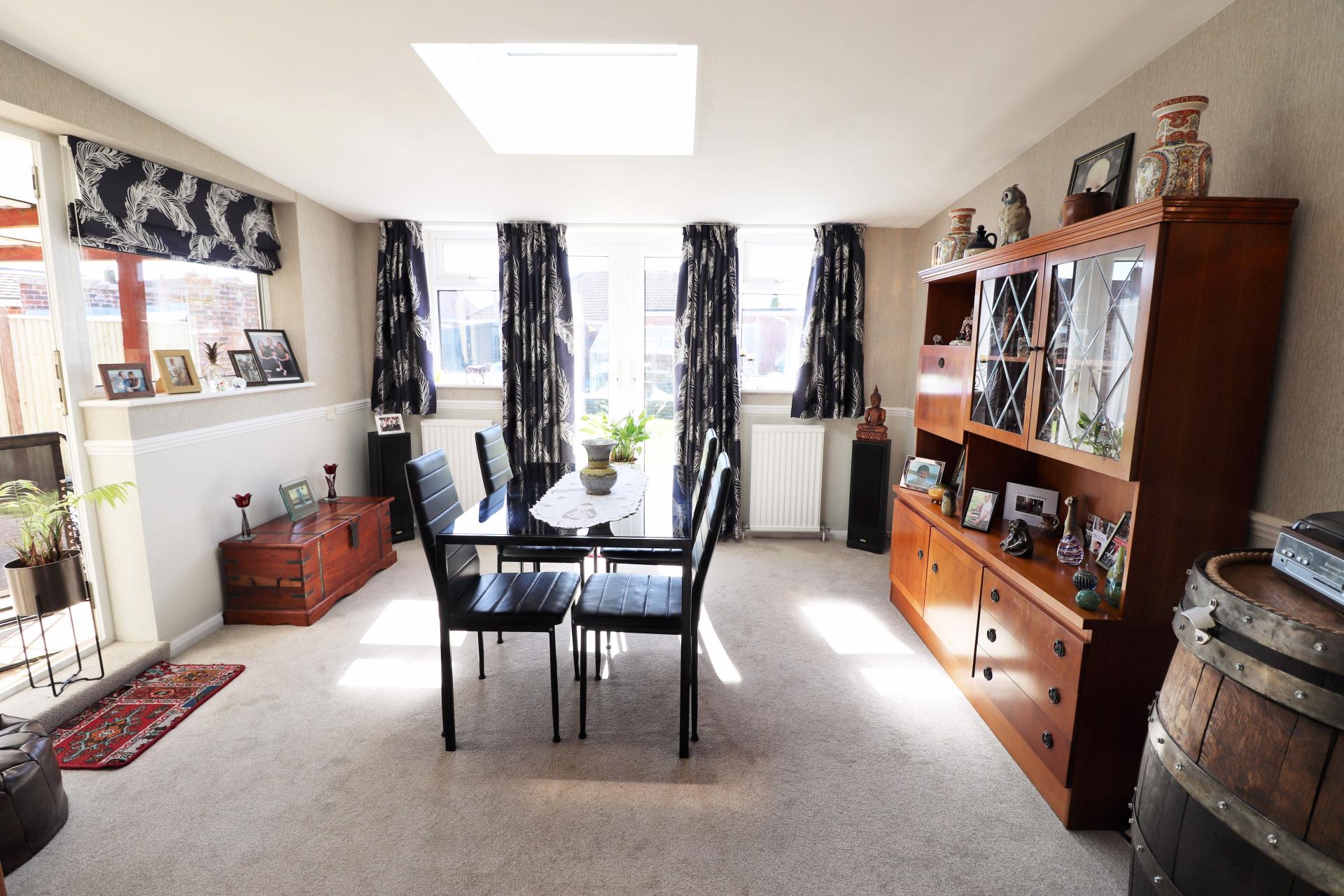 Double aspect room double opening double glazed doors to the rear with an additional double glazed door to the side. Double glazed windows to the side and rear. Skylight window. Two double panel radiators.