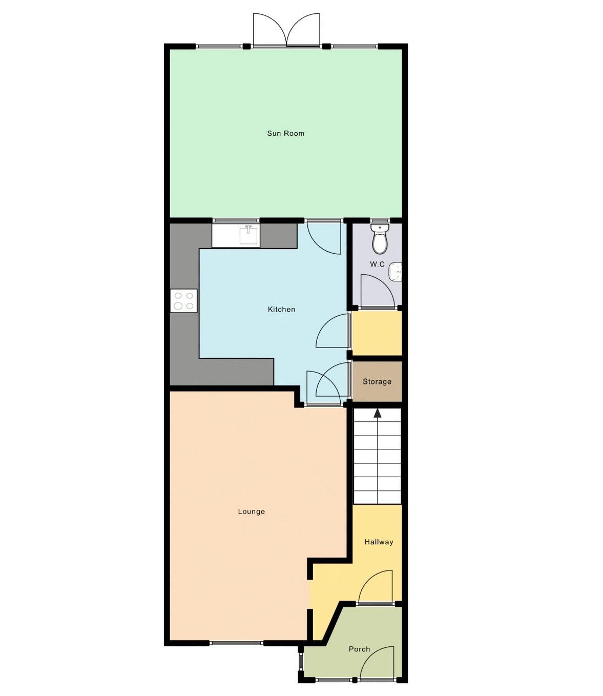 Double opening double glazed doors to the rear garden. Double glazed windows to the rear.