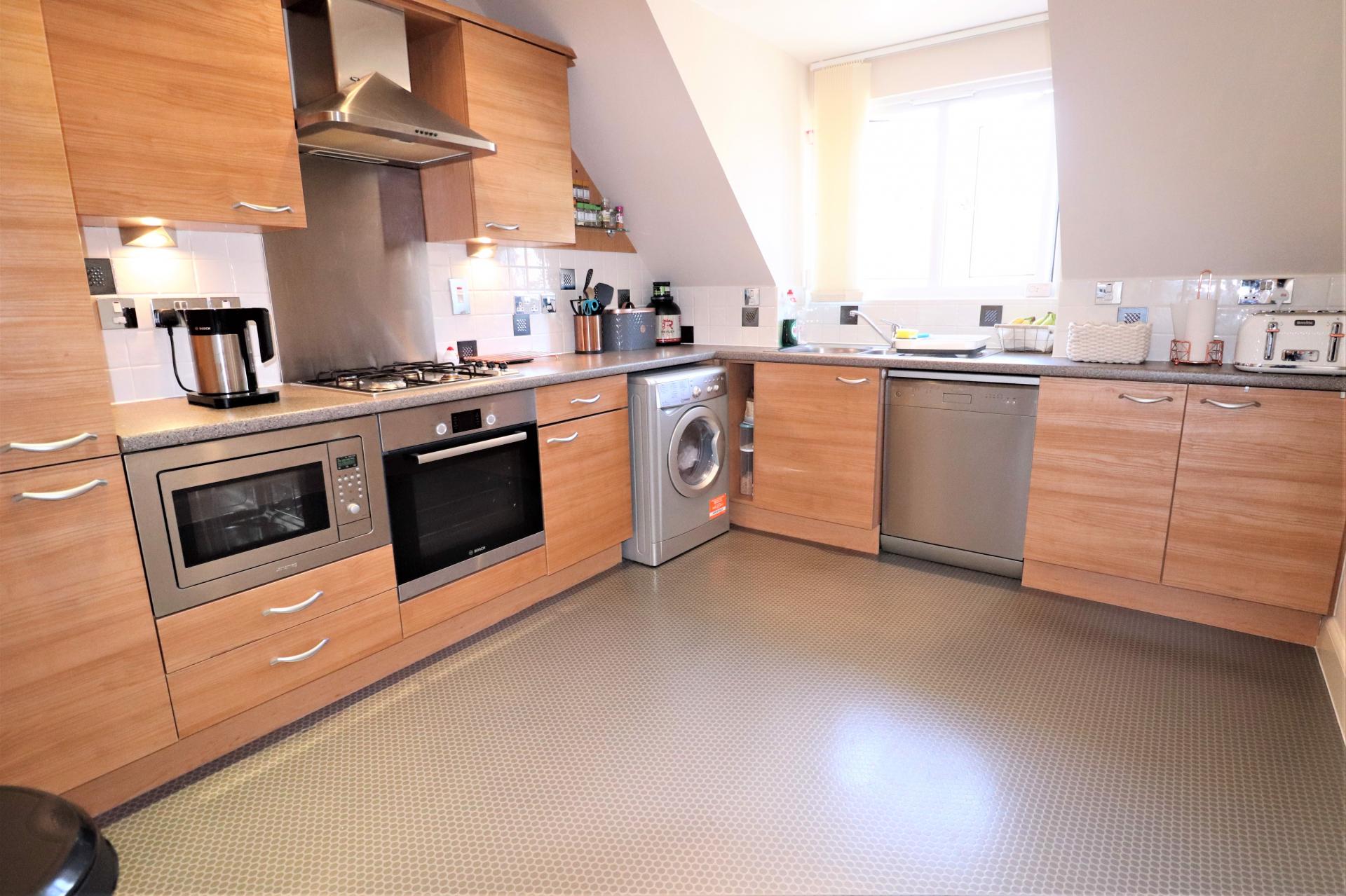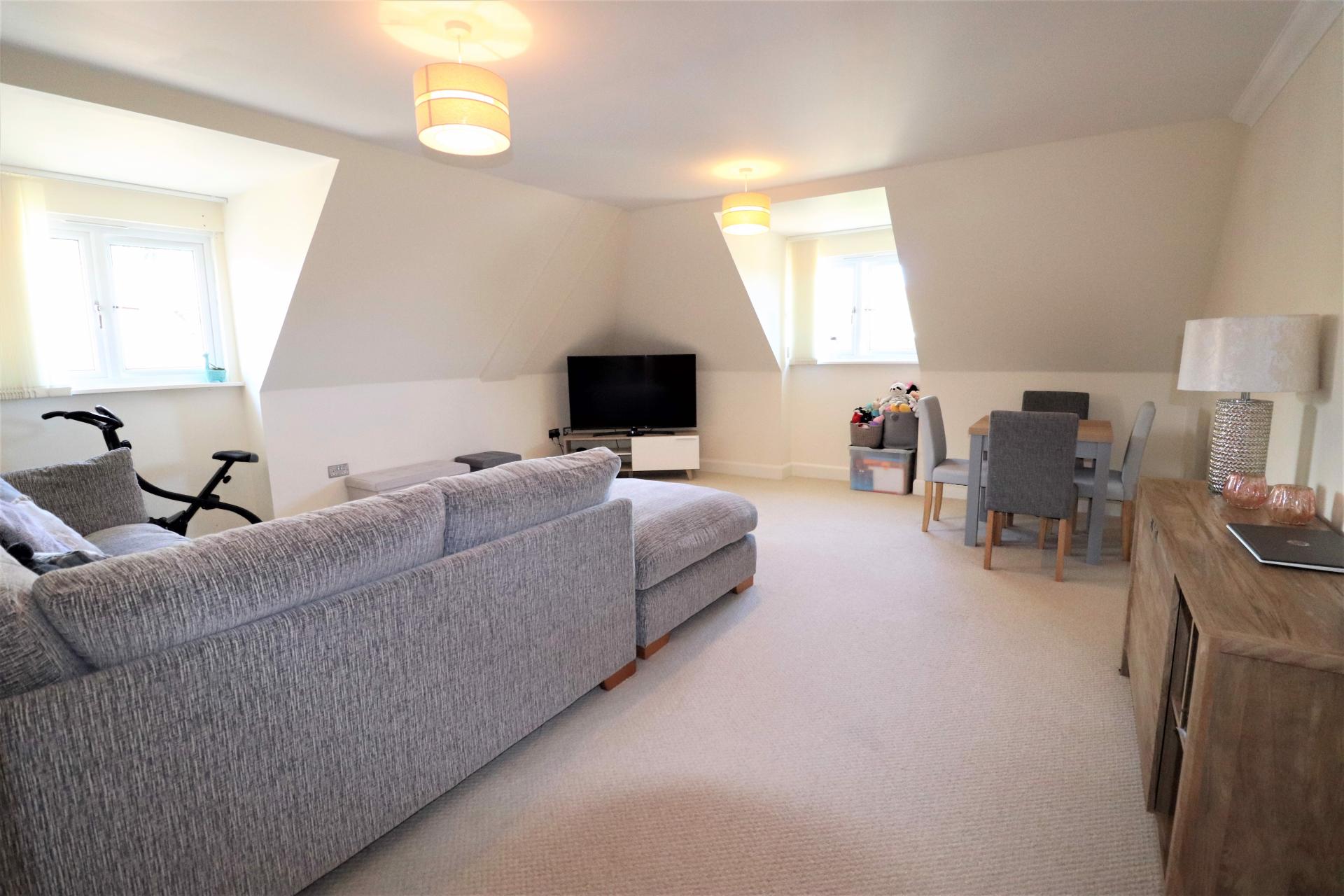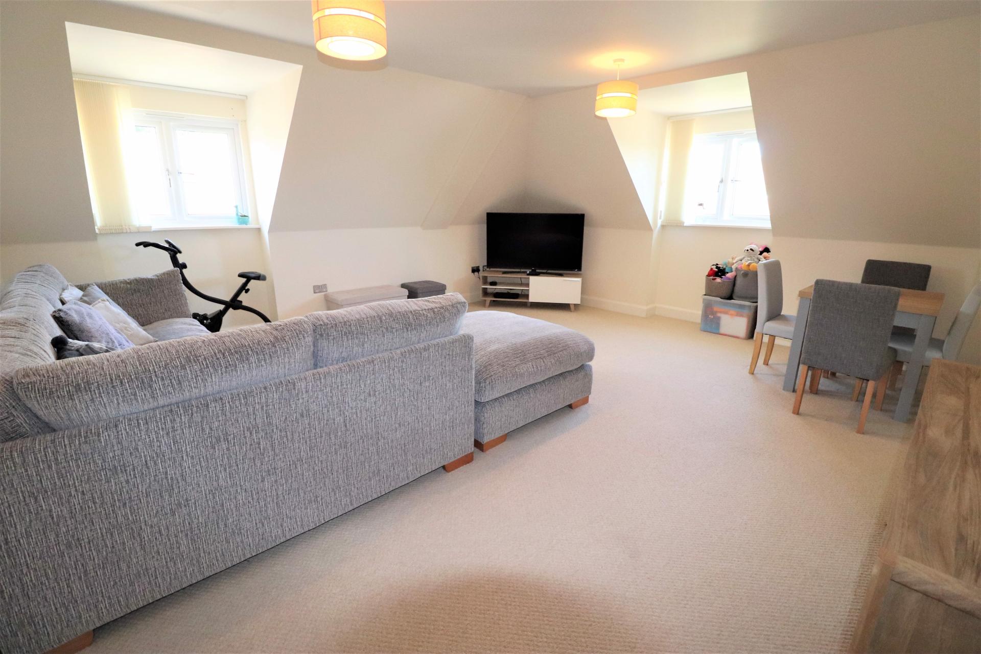 A bright and airy two bedroom top floor apartment with spacious accommodation including an 18 foot lounge, 15 foot master bedroom and two bathrooms. The property also has the added benefit of a boarded loft space giving lots of additional storage space. Outside there is a barn style car port giving covered off road parking and communal gardens to all sides.