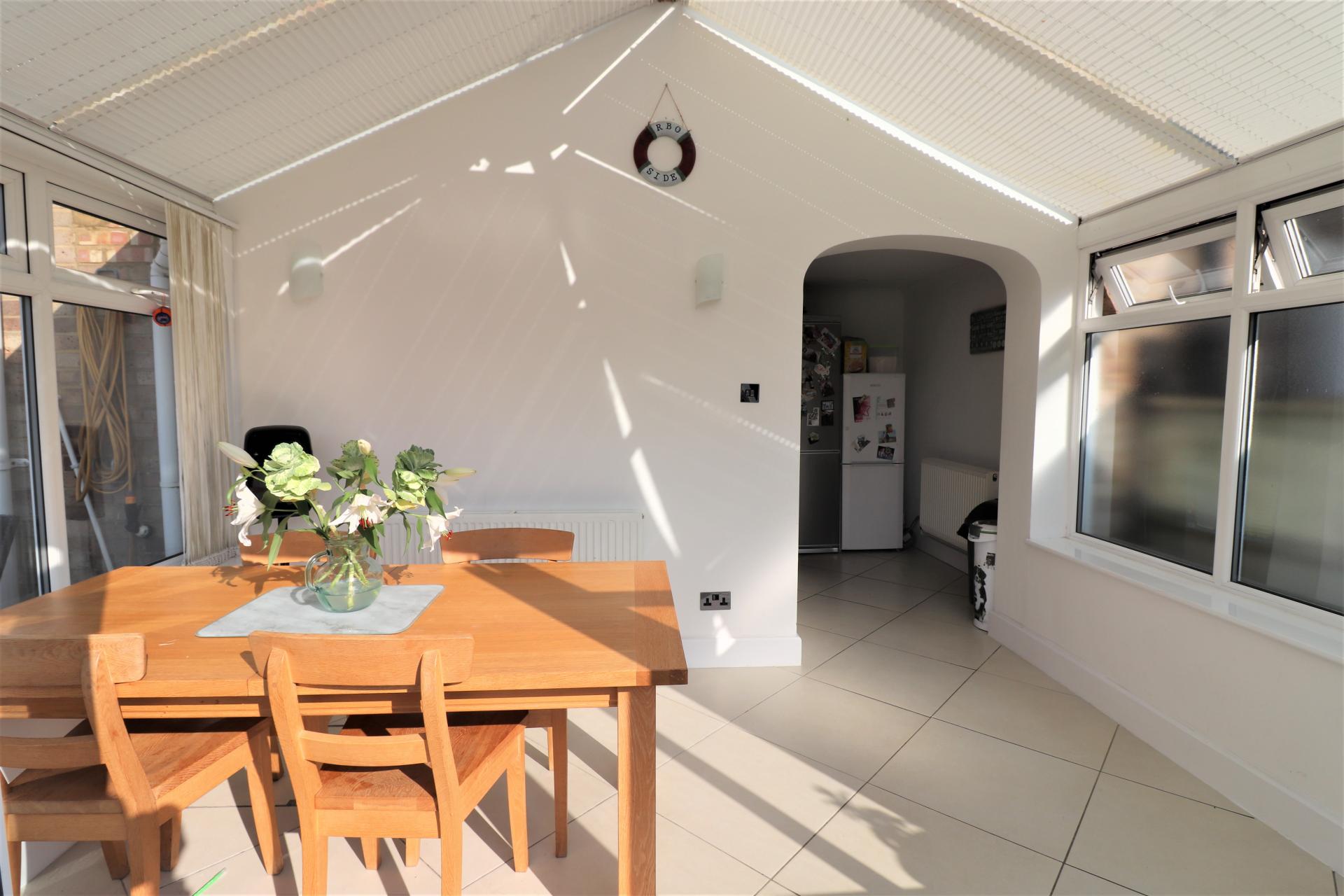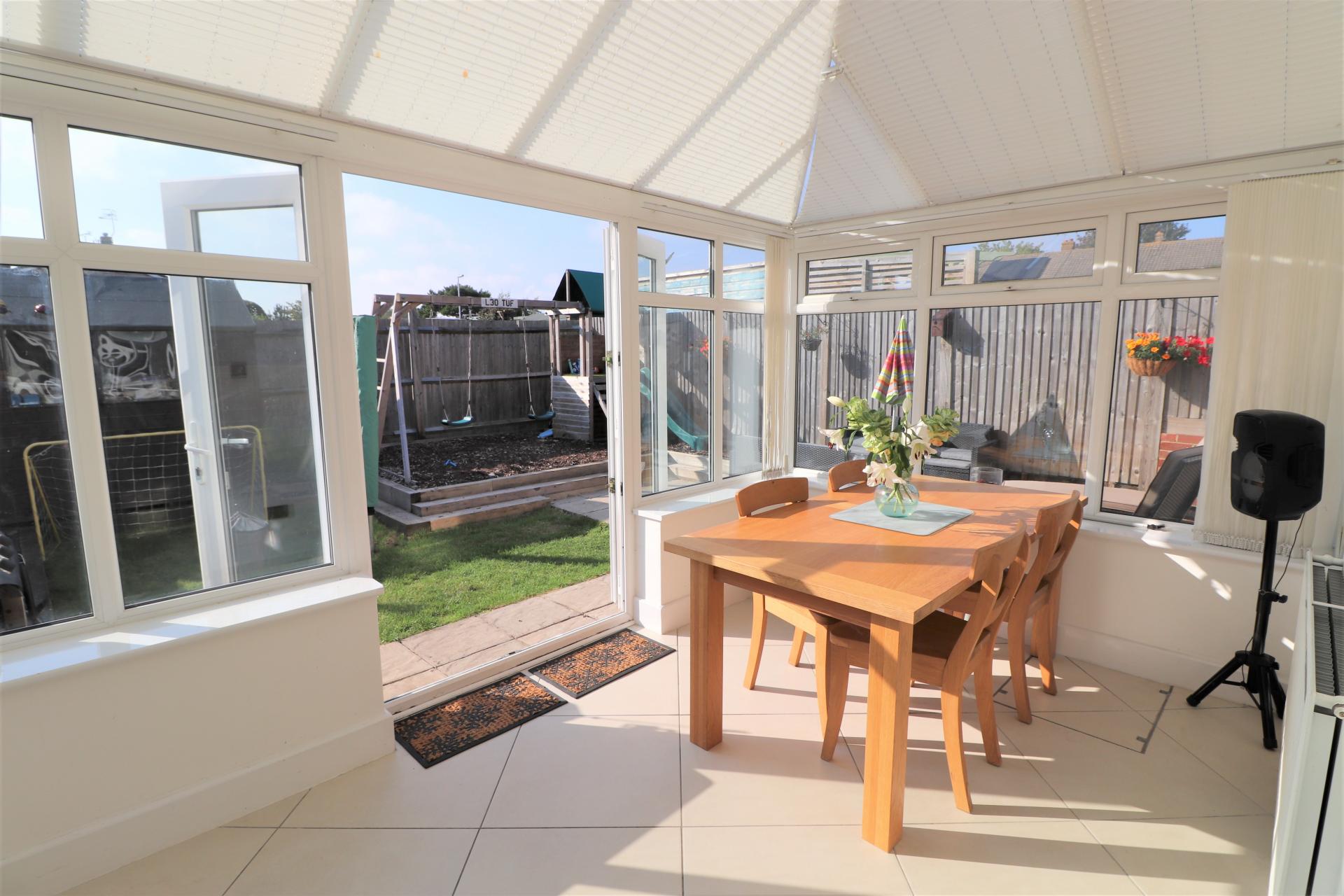 Victorian style with a brick base. Double glazed windows to three sides. Double opening double glazed doors to the rear garden. Double panel radiator.